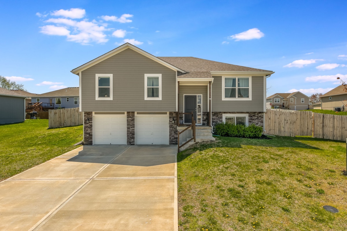 I’m hoping you’ll feel quite at home on this quiet street. The house is located just minutes from highway access to get to to all the best Kansas City has to offer, or you can use the smart TV and Wi-Fi for a relaxing stay in. This single level home has 3 bedrooms; 1 Queen bed, 3 Twin beds, full bath, kitchen, washer and dryer, and a spacious bonus room with yoga equipment. Furry guests will enjoy the spacious fenced in back yard. A charcoal grill is available to use as well.