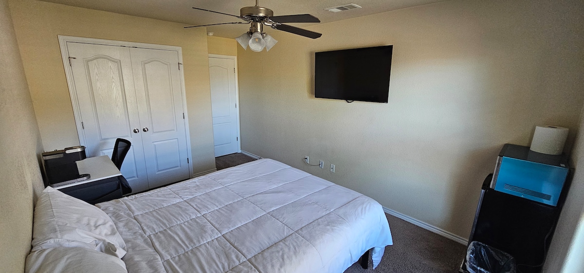 Escape to our peaceful 1-bedroom, 1-bath guest space on a working farm! Perfect for families, couples, or solo travelers, it features a comfy king bed and two twins. Why you’ll love it: Shared pool with pasture views Meet friendly fluffy cows, donkeys, pigs & more Pet-friendly & welcoming to animal lovers We allow two vehicles max, and any extra visitors must be approved in advance. Relax poolside, brush a donkey, or just soak up the country calm — we’d love to share our farm with you!
