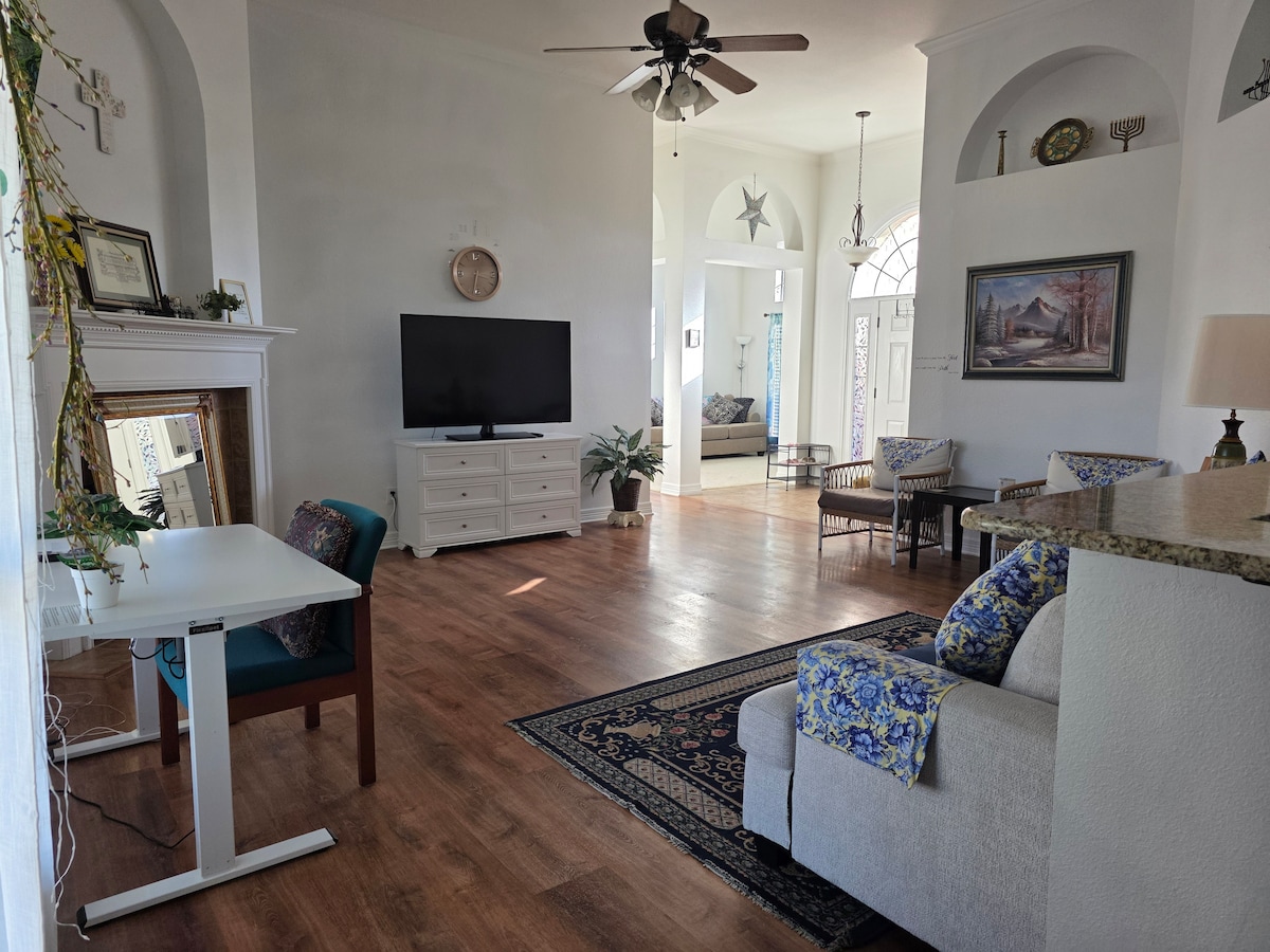 Mediterranean Style Home in community with Country backyard view. Close to Fort Hood/Shopping. Complimentary bottle of wine! Office Space. Master Bed is King Sized, Walk Through Shower/Soaking Tub. Other beds queen sized. 3 TVs w/Roku for streaming. Keurig (K-Cups provided),Full Sized Refrigerator AND Mini Fridge, 2 patio w/seating, Gas Grill (1 time 15.00 fee to use). Electric LR Fireplace. WIFI. NO PETS. Exterior lighting/outside cameras on the property for safety. Treadmill upon request.