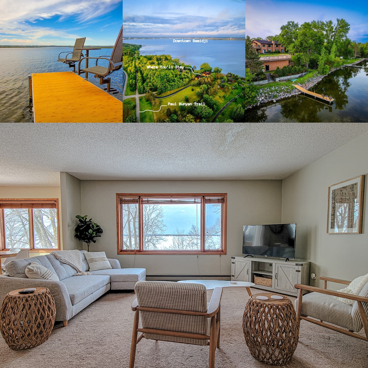 Private access to Paul Bunyan Trail! Located on beautiful Lake Bemidji, this cozy first floor 2 BR 2BA condo is ready for your lakeside getaway! Enjoy the private deck with views of the lake, Grill, FREE use of Kayaks. Comes furnished with everything you need to feel comfortable for your stay including a King bed,Queen bd, Sleeper sofa, fast internet, smart TVs, Keurig coffee and cooking essentials. Seamless, self check-in is provided. Cancellation policy is firm.