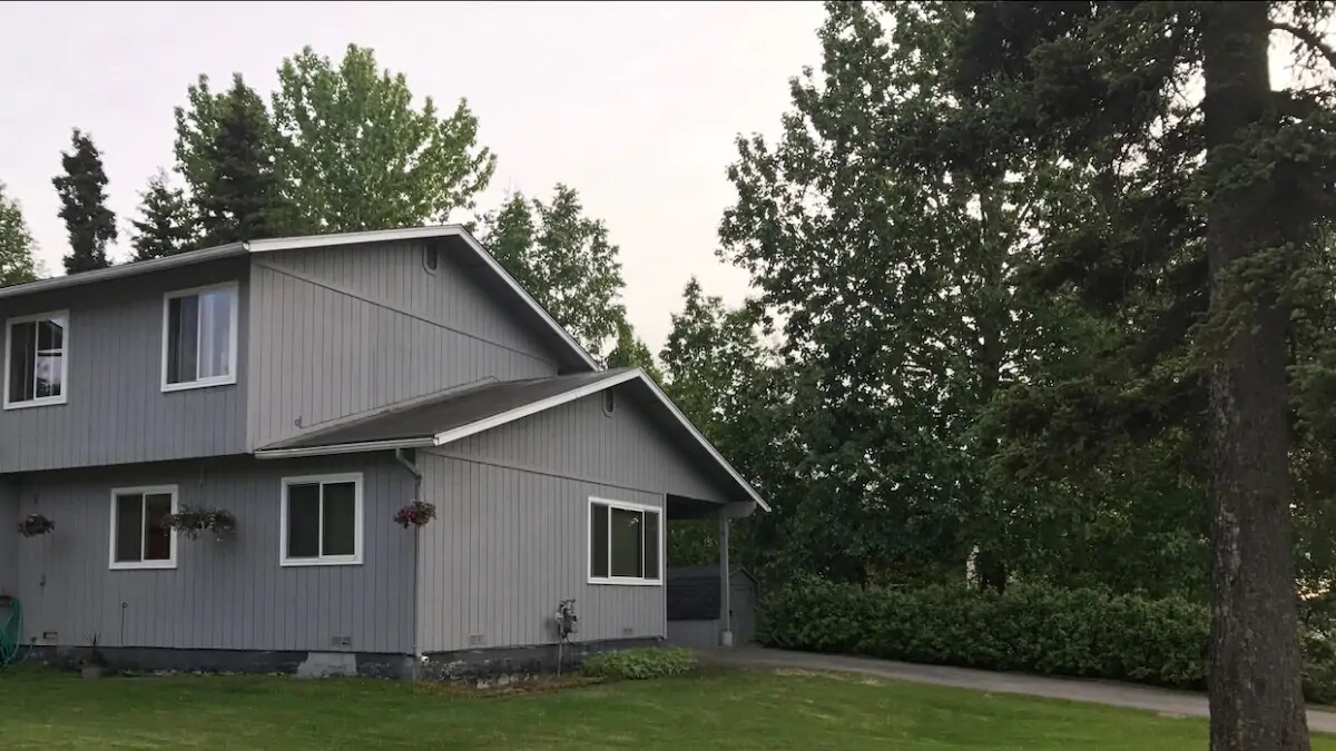 Cute, comfortable upper level unit located close to hospitals, University of Alaska Anchorage, and the military base. It is also a short and convenient drive to downtown shopping areas, or can be a great home base for exploring beyond city limits. You will love its rustic charm, quiet neighborhood, privacy, and extra space. Features private patio, fenced yard, washer/dryer. 2 bedroom/1 bathroom. It is perfect for short or long term stays.