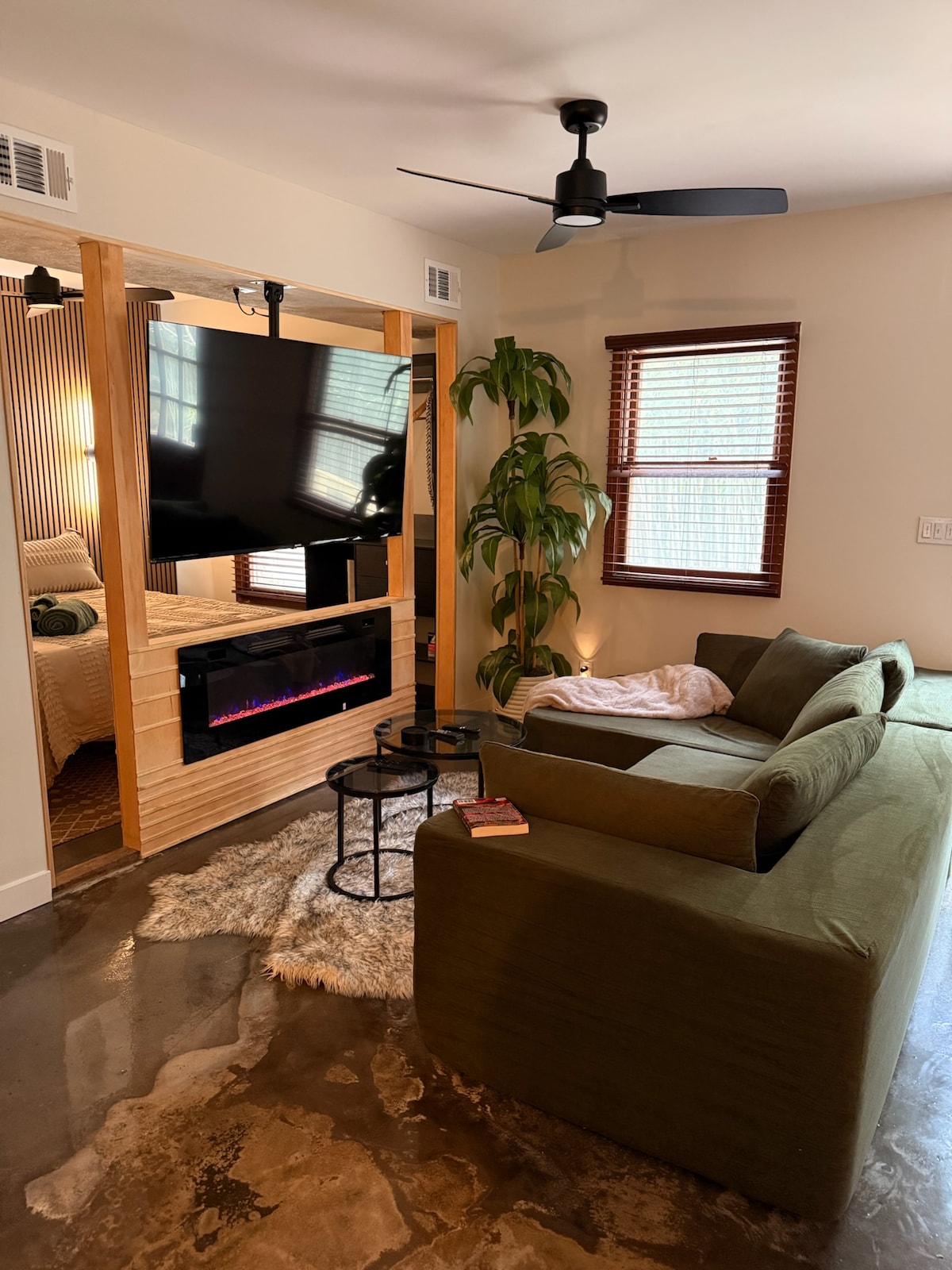 This one-of-a-kind smart home has 3 rooms, sleeps 4 and it's own private outdoor space for smoking or just unwinding. Home automation controls lights, fans, curtains & more. Fully stocked kitchen if cooking is your thing with great restaurants in the area. Located within city limits, minutes to the airport & shopping. Great location for most concert venues & the best that Atlanta has to offer. Why settle for a hotel room when you can call The 3060 Guest House your Atlanta residence. No Parties!