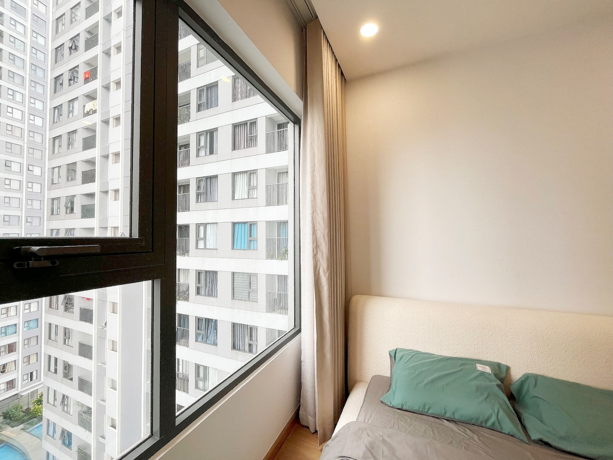 Nơi ở độc đáo này mang một phong cách rất riêng. Căn hộ 1 giường ngủ, nằm ngay tầng 4 (Tầng tiện ích của toà nhà: Dễ dàng sử dụng hồ bơi, khu vui chơi trẻ em, vườn hoa, khu BBQ ngoài trời, phòng xông hơi, GYM), vị trí trung tâm thành phố thường xuyên diễn ra các cuộc họp hội nghị, thương mại, dịch vụ. Có xe bus miễn phí đi trung tâm Hồ Chí Minh và ngược lại.