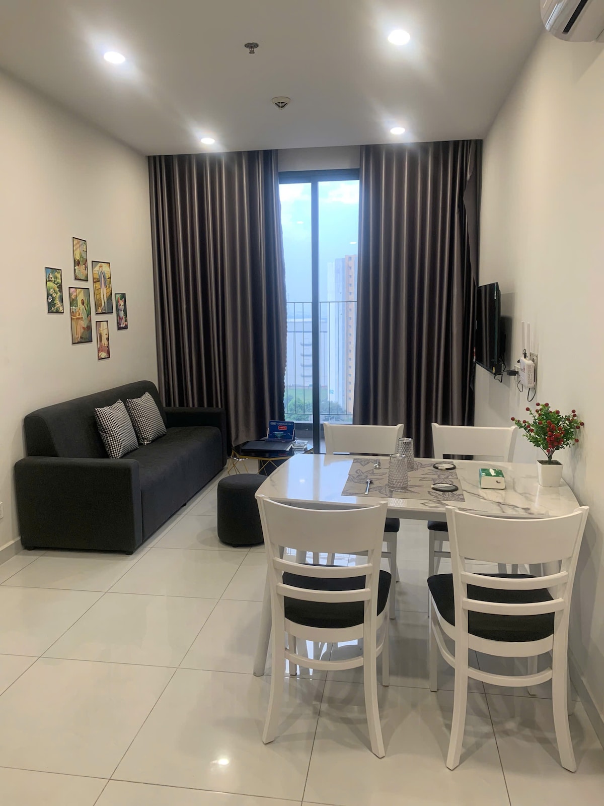 - Căn hộ 1 phòng ngủ rộng rãi, thoáng mát, được thiết kế hiện đại với đầy đủ nội thất cao cấp. - Bếp được trang bị đầy đủ dụng cụ nấu ăn, giúp bạn tự do chế biến những món ăn yêu thích. - Phòng tắm sạch sẽ, có máy giặt riêng, cung cấp khăn tắm, dầu gội, sữa tắm. - Căn hộ nằm ngay trung tâm thành phố, ngay AEON Mall, sân Golf Sông Bé và KCN VSIP 1, thuận tiện di chuyển đến các địa điểm làm việc, vui chơi giải trí.