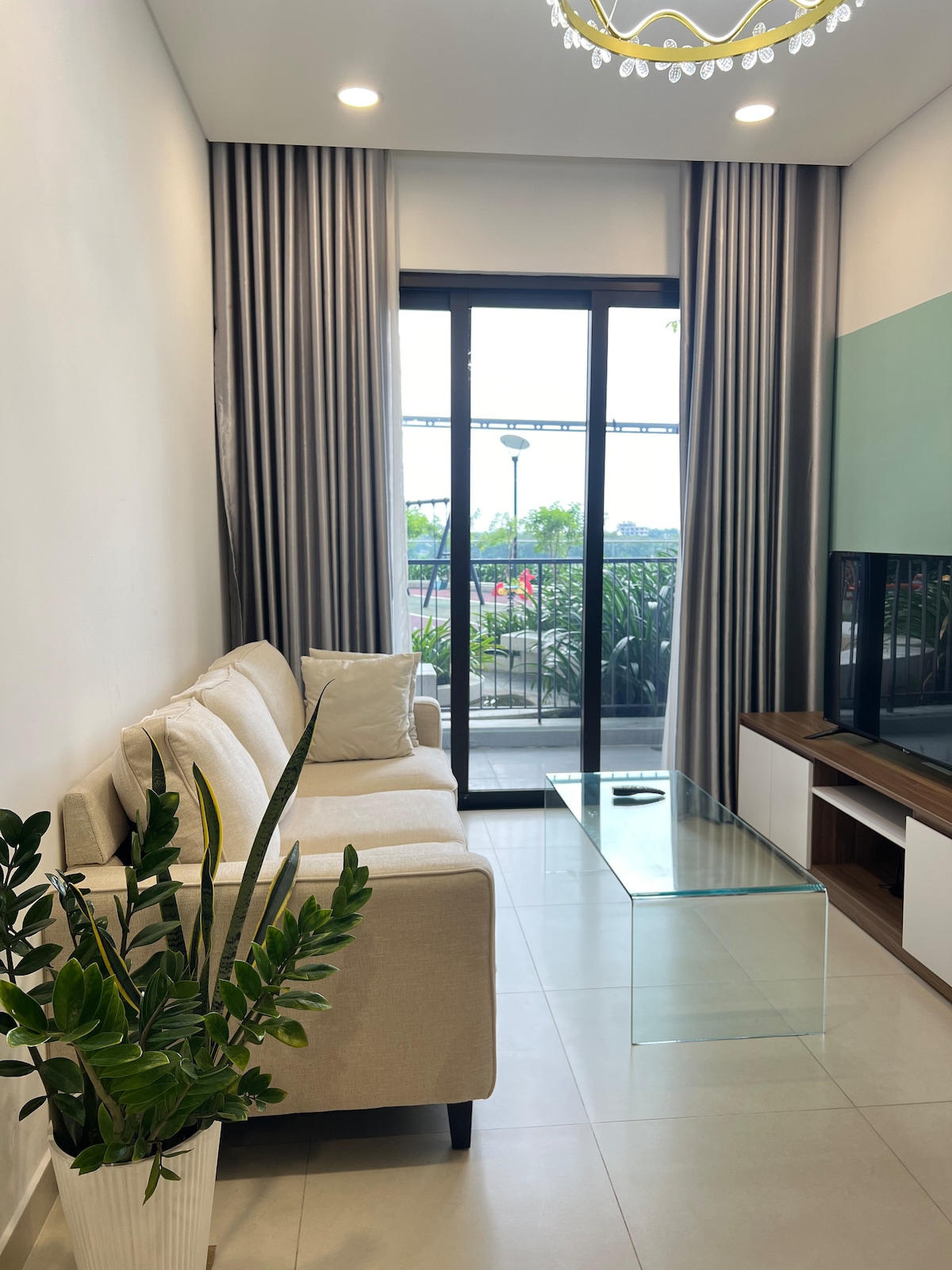 欢迎您入住位于 平阳新市镇中心 Midori Park The Glory 的 现代两居室公寓。 公寓位于 高楼层,宽敞明亮,带有 可观赏泳池和网球场的阳台,环境安静、阳光充足。 Aeon Mall Bình Dương Canary 永旺购物中心就在楼下,步行几分钟即可购物、用餐或观影。 是 家庭出行、商务出差或度假休息 的理想选择。