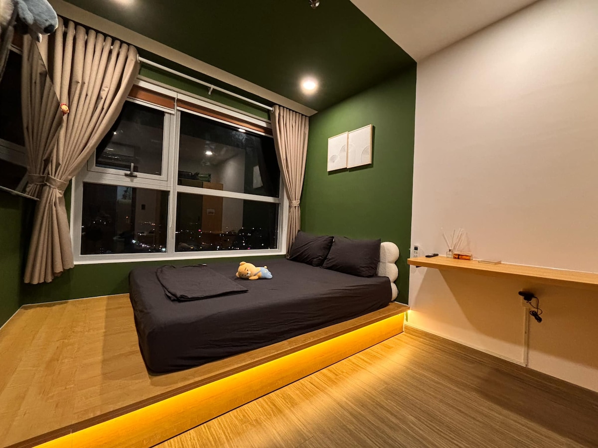 Welcome to your cozy 1-bedroom apartment near Becamex Tower! Enjoy a queen bed, private bathroom, and a fully equipped kitchen for home-cooked meals. Relax in the living room, work at the desk with WiFi, or watch TV. Take advantage of free pool, gym, and yoga access. Steps from restaurants and city spots, it’s perfect for work, leisure, or a relaxing getaway.