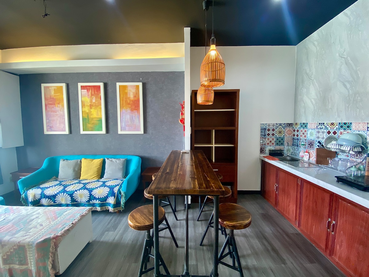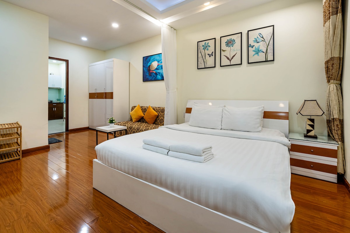 Welcome to Your Urban Oasis! Relax in our 1-bedroom apt for 2 with a wide-view balcony in Japan Town, just 5 minutes from HCM center. Restaurants, bars, cafes, massage spots, and convenience stores are all within a 1-200m walk. On 3rd floor, your Japandi paradise has full amenities. No elevator, but the wide and gentle stairs are a free workout! 💪 Enjoy a 100-inch projector for movie nights, a cozy 1.8m sofa, a fully-equipped kitchen, and a refreshing bathroom.