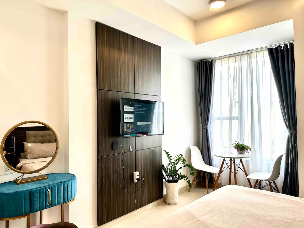 A beautifully designed studio apartment with everything you need, centrally located but hidden away just enough for a peaceful night of sleep away from the heavy city noise. Great for travelers who want to explore Saigon and are looking for quality comfort and a more local experience. - Beautiful swimming pool - Free fast wifi, Cable TV - Free amenities for your living: washer, dryer, AC, fridge, hot water - Kitchen with enough tools for your cooking. Note: Not provide/support VAT invoices