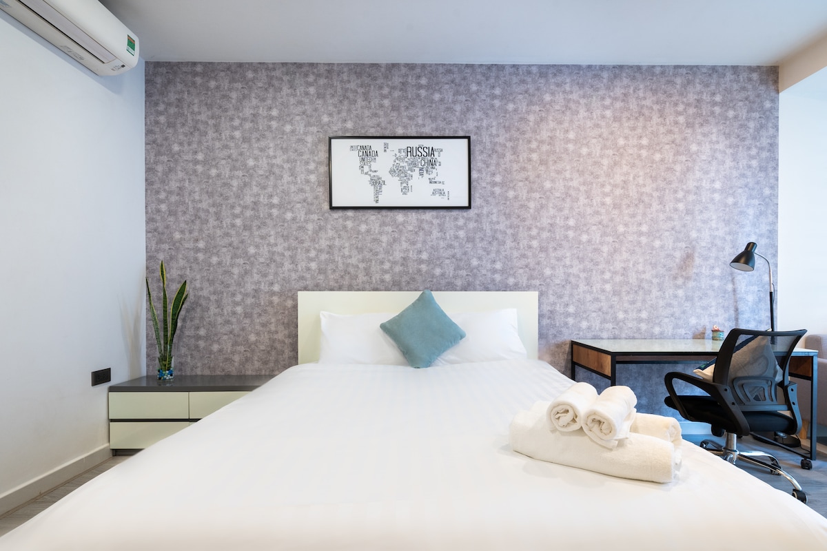 Escape to our serene Wabi Sabi-inspired haven nestled in the heart of the city's most peaceful residential area. This thoughtfully designed space sits just moments from Ben Thanh Market (5 minutes) and your morning coffee fix at Starbucks (1 minute away). Unwind with our impressive 100-inch projection system featuring premium Netflix access. Located in a beautifully renovated building with elevator access, you'll enjoy complete privacy and security in this safe, middle-class neighborhood.
