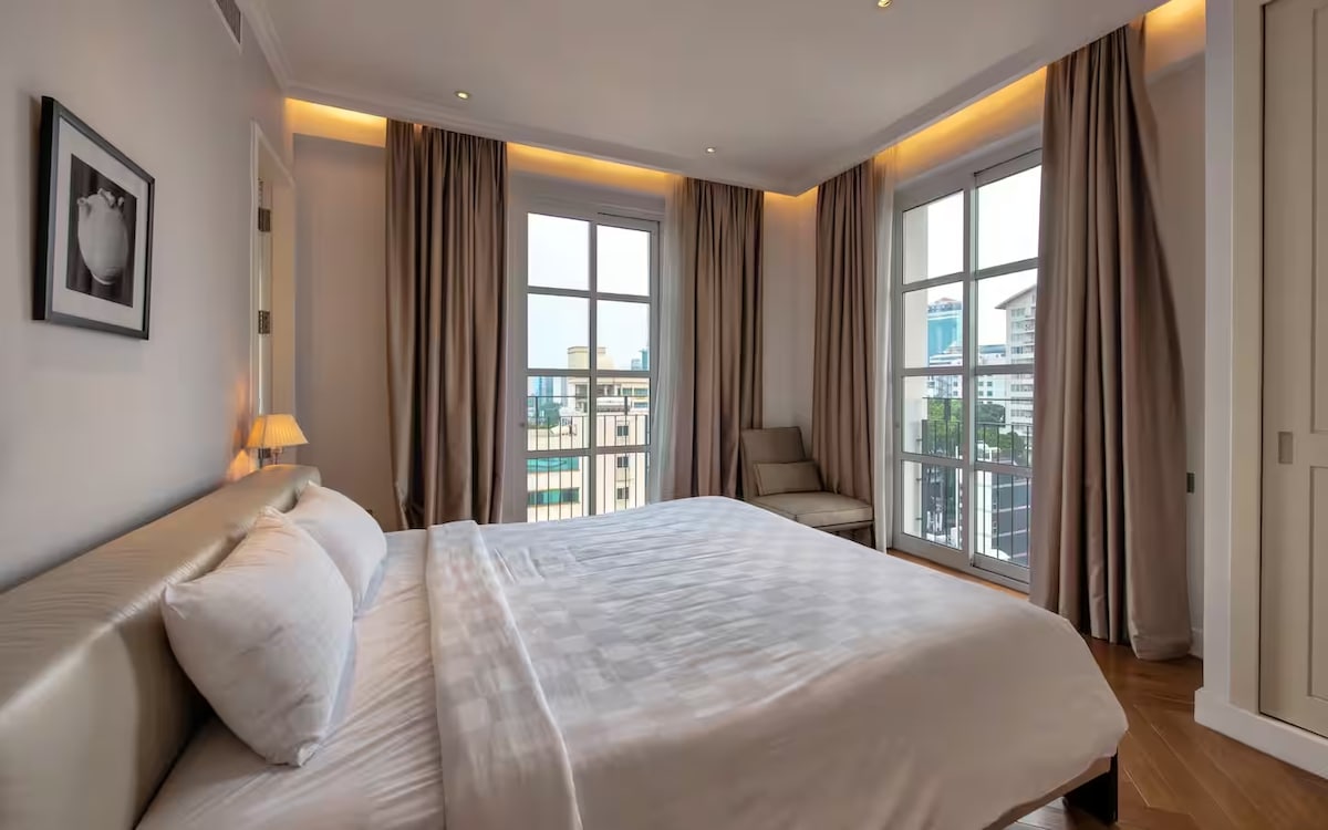 Experience the ultimate stay in this stylish penthouse, a spacious and stylish 2-bedroom, 2-bathroom retreat. Enjoy: ❤ Prime location in District 1 next to Independence Palace, the heart of Saigon ❤ A rooftop swimming pool with stunning city views and a gym (additional payment) ❤ Two elegant bedrooms with plush beds (1 King, 1 Queen) ❤ Complimentary snacks and water ❤ In-unit washer & dryer ❤ A warm, personal greeting upon arrival Message us for special promotions and trip planning assistance