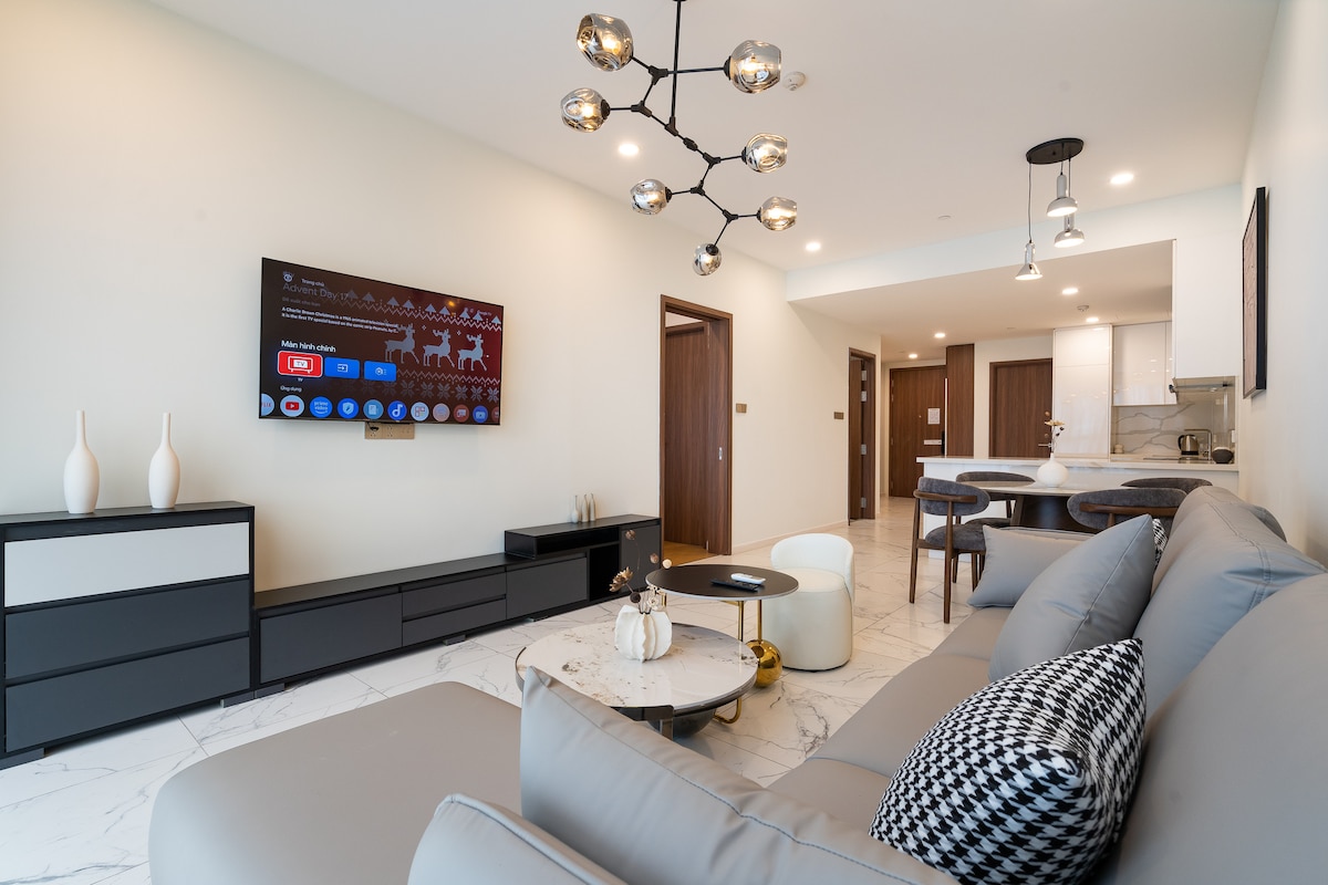 Welcome to V Living (Galleria Residence) Prime Location: A quick 5-minute drive to the heart of District 1. Stunning Views: Unforgettable, direct views of the Ba Son Bridge and Saigon River. Luxury Interior: Tastefully designed with high-end, comfortable furnishings. Ultimate Convenience: Restaurants, cafes, and convenience stores are right downstairs. Modern Amenities: High-speed Wi-Fi, Smart TV, and a fully equipped kitchen for a seamless stay.
