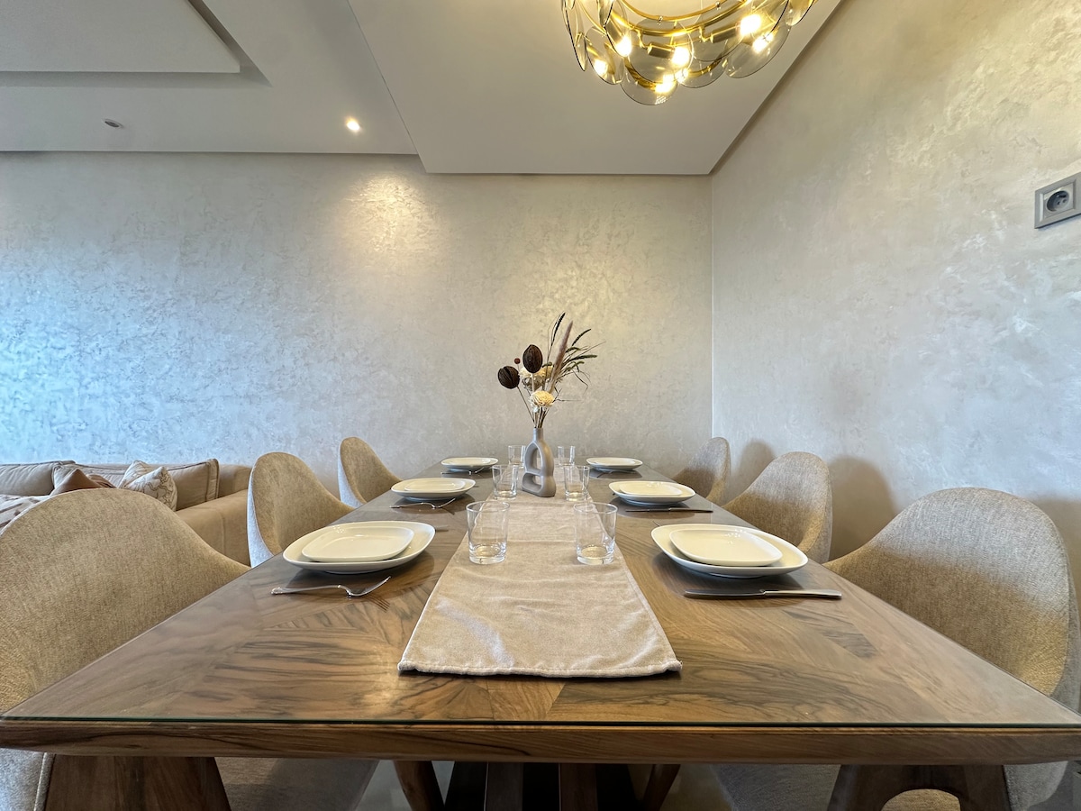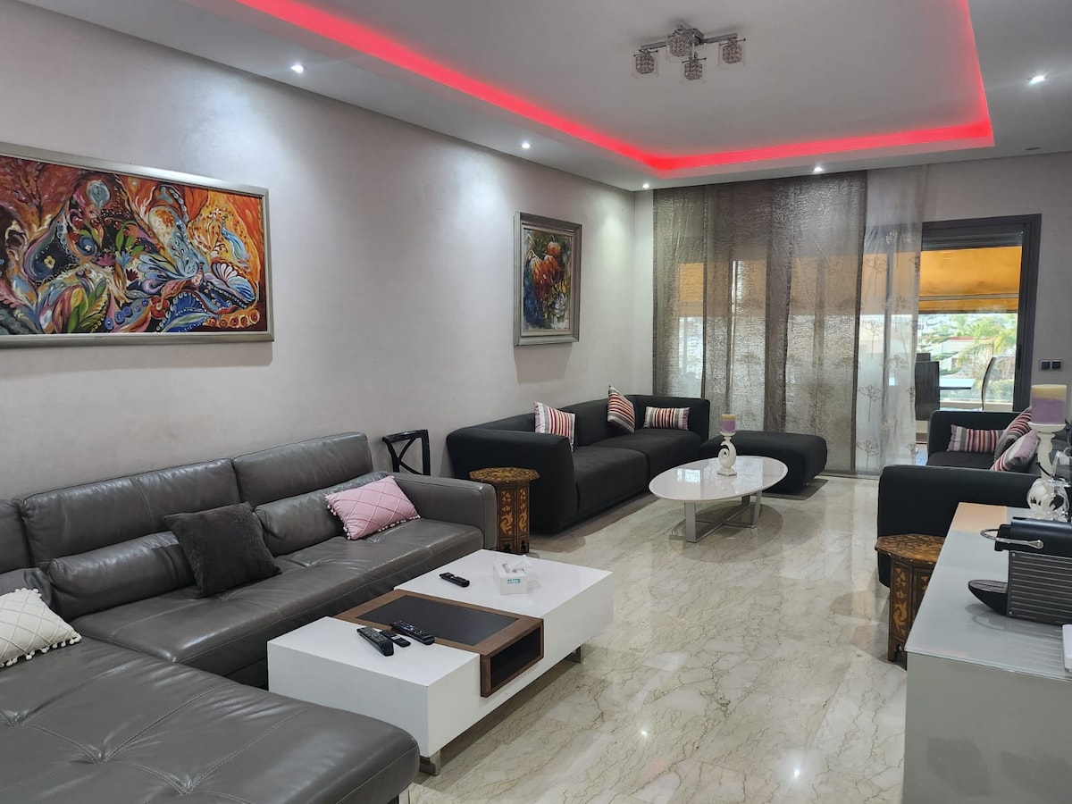 Welcome to our elegant apartment in Parc de Mohammedia, perfect for vacations or business. Enjoy comfort and tranquility close to the beach and amenities. Spacious bedrooms with balconies, a bright living room with foosball, a fully equipped kitchen, and two modern bathrooms. Free Wi-Fi, air conditioning, secure parking, and a washing machine included. Nearby activities: walking, water sports, cultural visits, and dining. Book now for an unforgettable stay in Mohammedia.