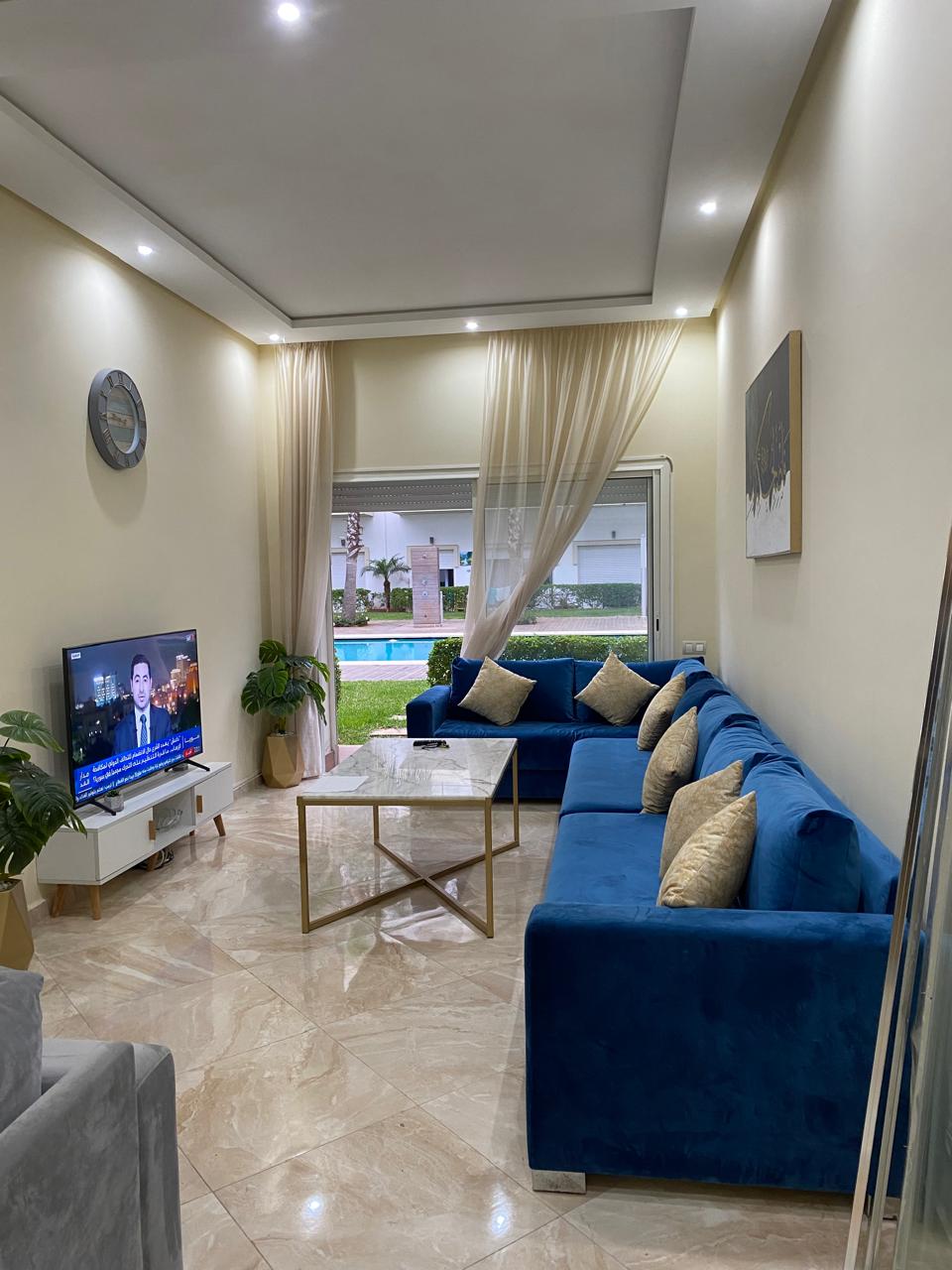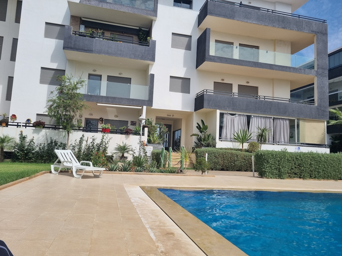☀️ Seaside Escape in Bouznika! Luxury 2-bedroom, 2-bathroom apartment at Évasion Bouznika — perfect for families, couples, or friends. Enjoy: 🌊 Sea view & quick walk to the beach 🏊 Direct pool access from your private terrace 🛏️ 2 bedrooms + bright living room 🛁 2 full bathrooms for extra comfort 🍽️ Fully equipped kitchen, WiFi, free parking Located in a calm, secure residence with 24/7 security. ✨ Comfort, sunshine & relaxation guaranteed!