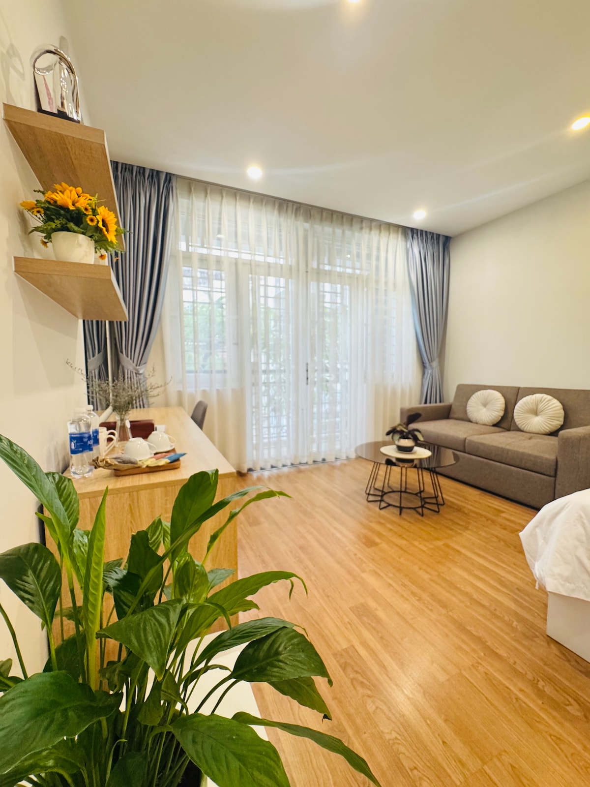 Established in 2023, We offer High Quality Short and Long Let Serviced Apartments located right on a busy street with famous cafes, restaurants, Circle K and convenient stores near by and just a few minutes walk to Bui Vien walking street, Tao Dan Park. Cost-effective compared to hotels, we provide 1 BR serviced apartments with privacy, modern style, kitchen, balcony, soundproof door & windows, desk space to work, rooftop garden, elevator, regular cleaning and the comforts of a “Home-from-Home”.