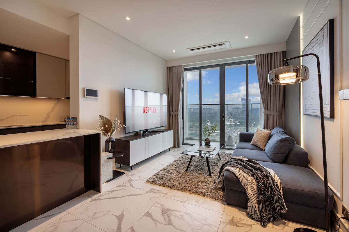 Luxury 3-Bedroom Apartment with Stunning Panoramic View of Saigon | Vincom Đồng Khởi Experience the best of Saigon from this spacious and upscale 3-bedroom apartment located in the heart of the city’s most prestigious address — Vincom Đồng Khởi. Perfect for families, business travelers, or groups seeking both comfort and sophistication, this residence offers breathtaking views of the Saigon skyline and the Saigon River through floor-to-ceiling windows.