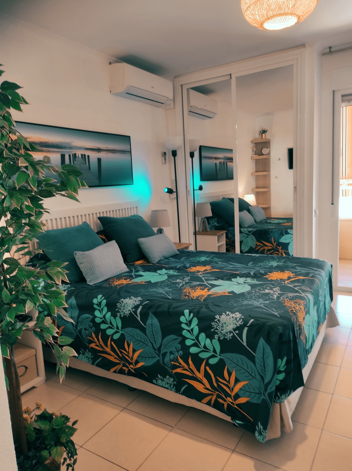 Este hermoso alojamiento está recién reformado, le hemos dado un toque personal y mucho cariño. Está situado a 200m de la playa, cerca de buenos restaurantes, chiringuitos, parada de autobús al frente y cerca del tren. Tiene wifi, aire acondicionado y un ventanal que se abre, quedando una terraza para que puedas disfrutar de una maravillosa vista del mar. El edificio es tranquilo, familiar, con espacios verdes. Ideal para desconectar o seguir conectado teletrabajando.