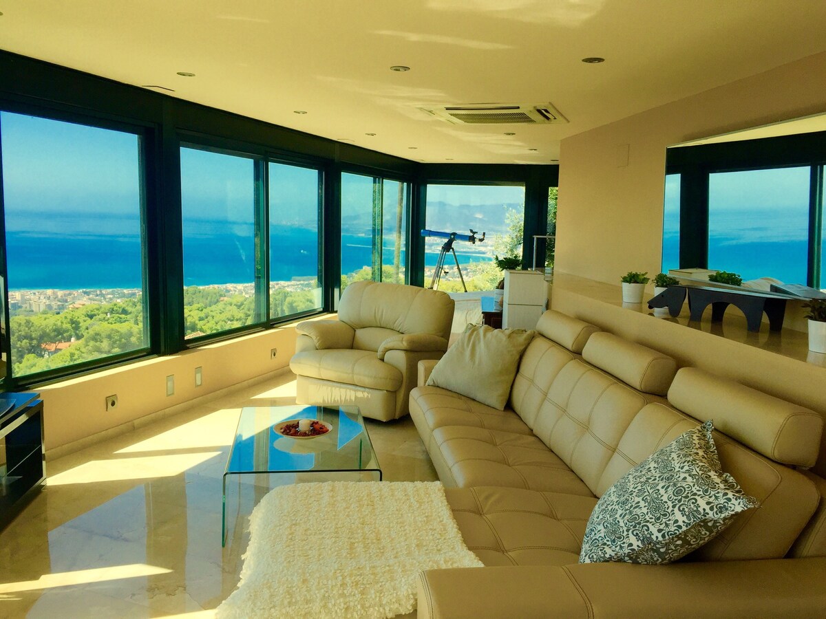 马贝拉独特。私人加热泳池。海景