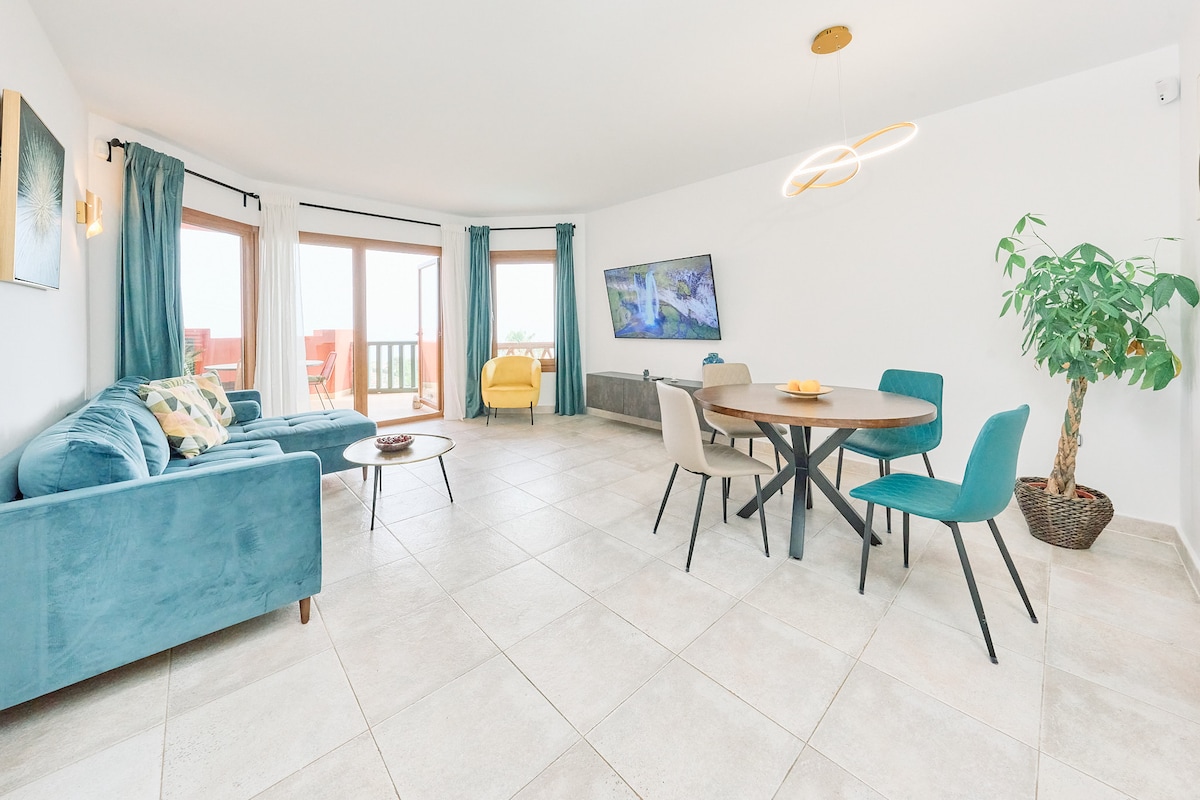 Forget your worries in this spacious and serene space. Located at the Higueron area it offers great views to the ocean and mountain. At its spacious terrace you’ll find a great outdoor eating area, tanning beds, jacuzzi barbecue and outdoor sitting area. It has a communal pool area and at the apartment you’ll find a fully equipped kitchen, washing and drying machine, dishwasher and all the basics to enjoy your meals at its dinning area. The spacious living room has a very comfortable sofa and tv