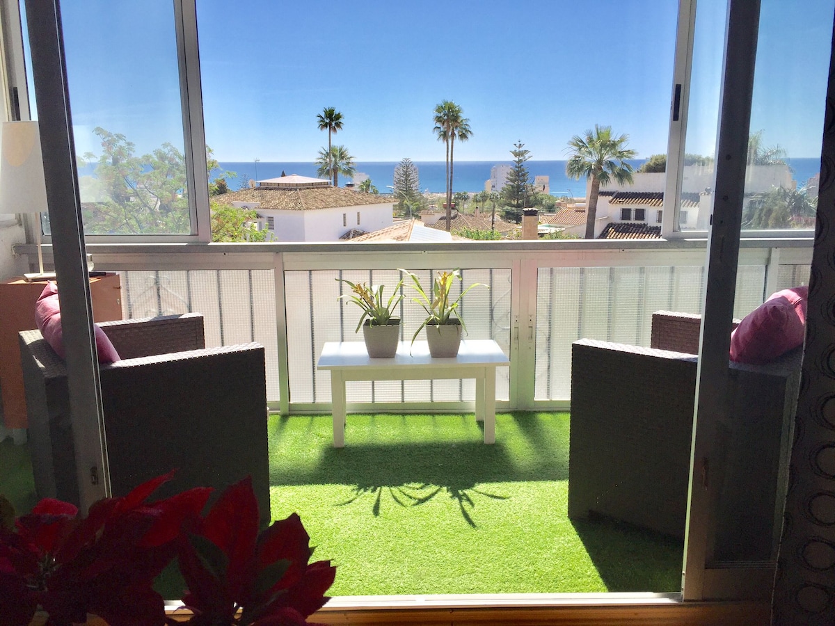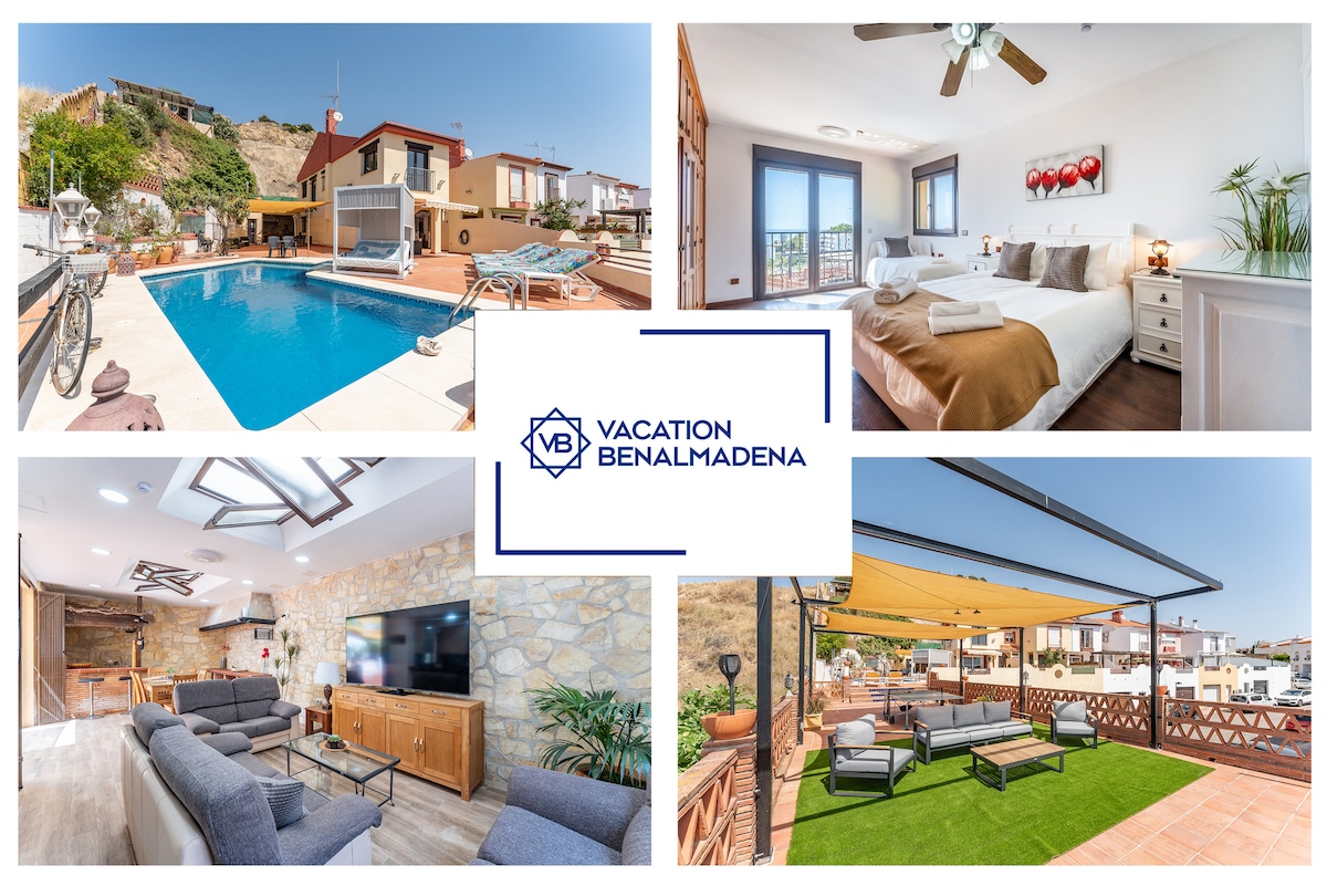 Beautiful house located in Benalmádena Costa, 2 minutes from the beach and the promenade. It has a large furnished terrace for dining or relaxing, with space for sunbathing and beautiful views of the mountains or the sea. Very quiet area, close to restaurants, supermarkets, bus, and train. Perfect accommodation for couples and families with children. Wi-Fi and Netflix available. Places of interest: Tivoli World amusement park, Dolphinarium, Cable car, Parque de la Paloma.