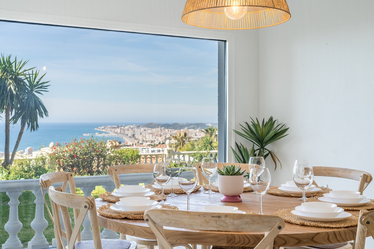 Experience the luxury of our Andalusian villa, nestled on a private cul-de-sac hilltop. Stunning sea and Fuengirola views, private pool, and modern amenities await. 5 bedrooms, 4 with ensuites, comfortably sleep 10. Relax in the spacious living area with a 65" TV, workout with the treadmill and rowing machine,or enjoy alfresco dining on the terrace.Explore Fuengirola, Marbella, Mijas Pueblo and Malaga, all a short drive away. A perfect blend of tranquility and convenience for your dream holiday!