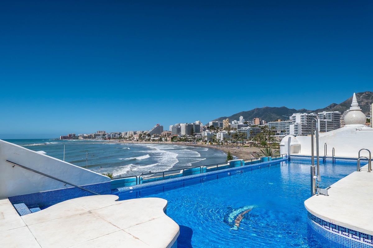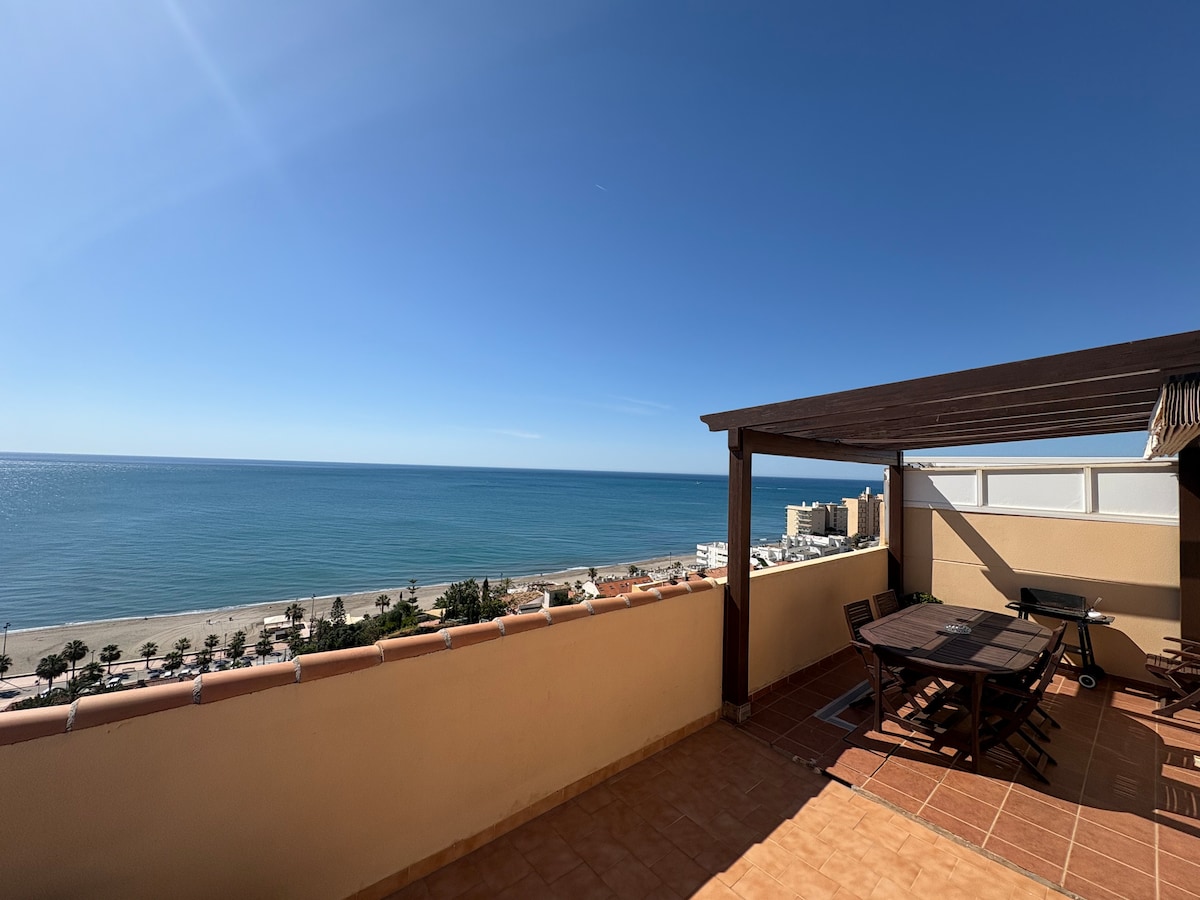 Beautiful Penthouse with large modern terrace and unspoiled sea view over looking the Mediterranean Sea and the mountains. You can enjoy the perfect sunset from the terrace. Great location (just 20minutes from airport) in the vacation complex of Benalbeach next to the beach. All the decoration and furnishings have been prepared tastefully with our guests’ enjoyment in mind and ideal to spend your best summer season holidays as well as the winter season in coastal area of Benalmádena.