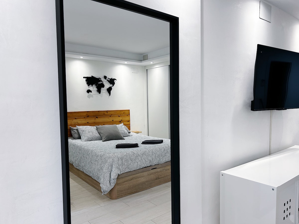 Newly renovated one-bedroom apartment with a Queen Size Bed, air conditioning and 600 MB internet connection. Located on the 3rd floor of a building with 3 elevators. Pool open from June to September. Beautiful sea and mountain views. Fully equipped kitchen with dishwasher, microwave oven, Nespresso Coffee Maker, water boiler, toaster, and all the utensils needed to cook. You can find an iron and hairdryer, wifi (optic fiber with 600 MB speed) and Smart TV with Movistar Channels.