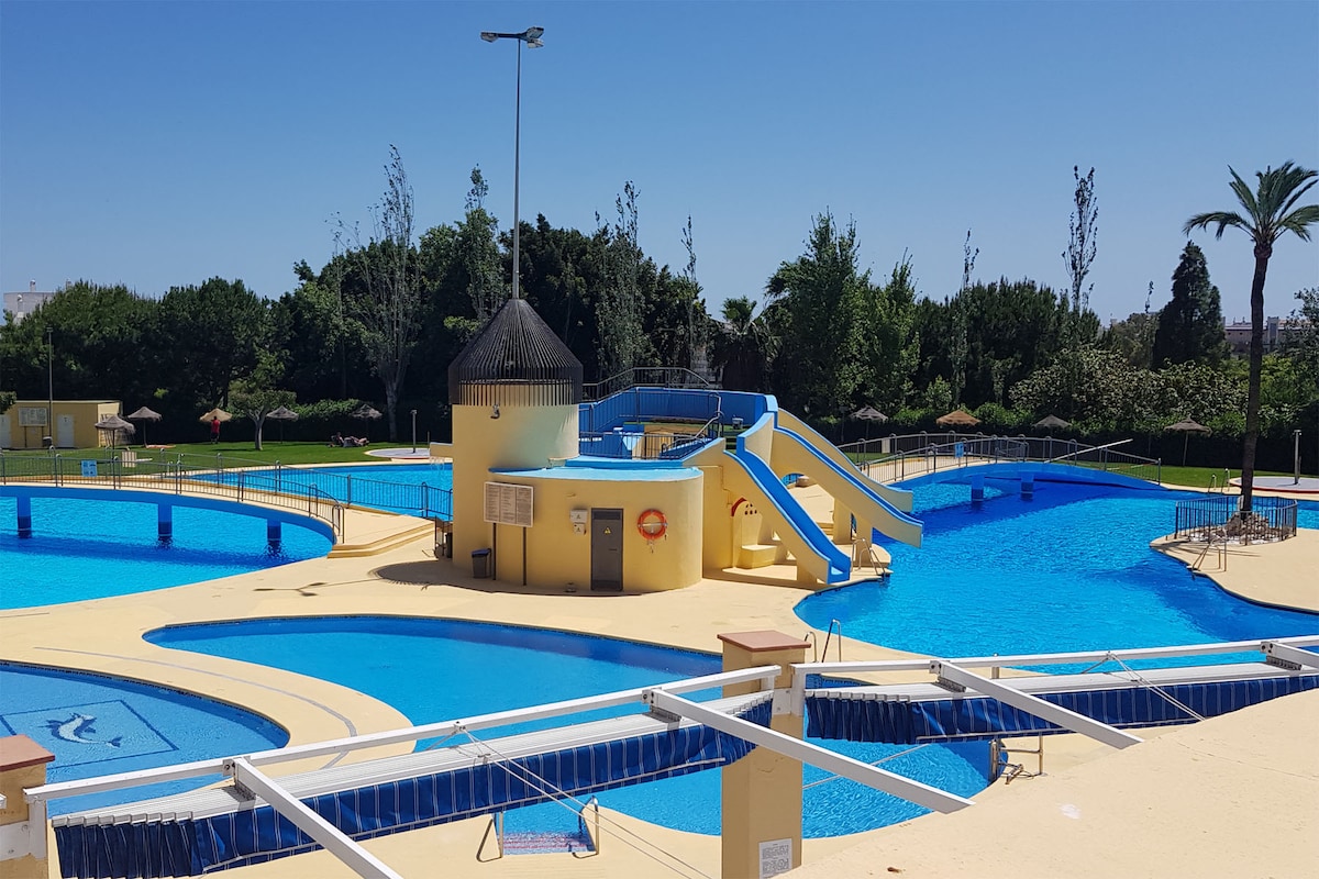 Descuentos: Semana - 5% Mes - 10% Lujoso estudio recién reformado y equipado con piscinas, zonas verdes y parques, muy bien ubicado con aparcamiento gratuito para una estancia muy agradable y en familia. Entrada totalmente AUTOMATA gracias a la cerradura inteligente de NUKI, sin esperas ! A 10 minutos de la playa Sitios de interés próximos como restaurantes, supermercados, farmacias y hasta pista de patinaje en temporada invernal. El piso cuenta con Wifi 5G, Netflix, HBO, Prime Video y Disney
