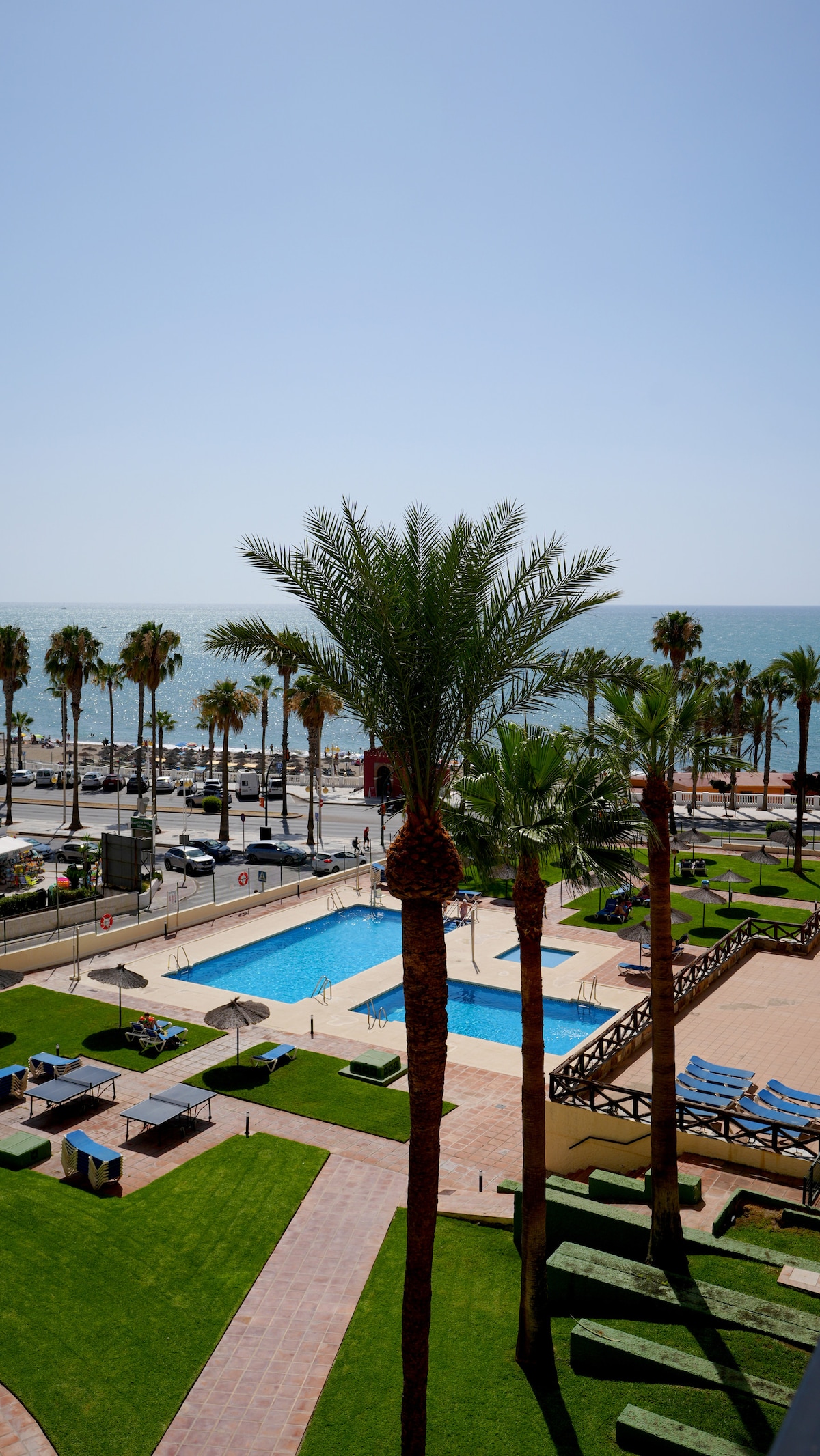 Apartment refurbished, is at the first line of the beach. It has a double bed and a chaislonge bed,bathroom and kitchen with all that you can need for holidays. 3 swimming pool one of them for kids. And air conditioning, air dryer, washing machine, oven, microwave And WIFI You have palm tree avenue less than 5 minutes walking distance. In that avenue you can find restaurants, pubs, supermarket, pharmacy. At the back of the building also there is a supermarket and burger king