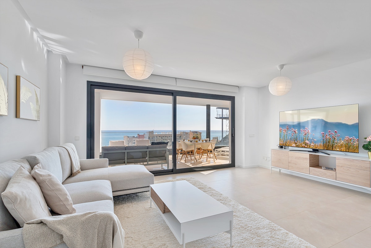 🏝Benalbeach🏖 Playa, piscinas, terraza, jardines.
