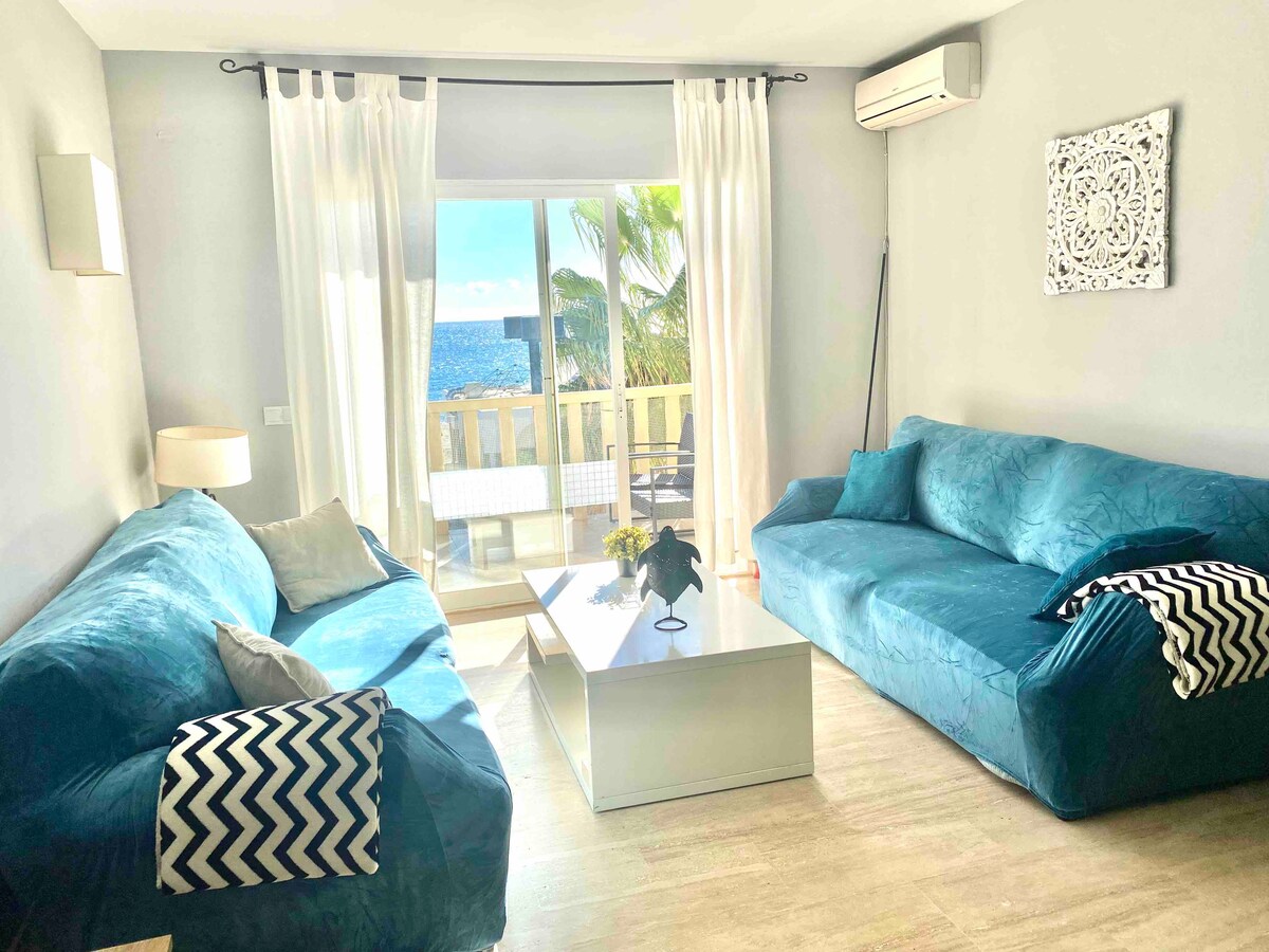Precioso apartamento a pie de playa, recién reformado, con gran terraza vistas al mar. Cuenta con espacio abierto, cocina, salon comedor, gran habitación independiente, con salida a la terraza, y amplio baño. A si mismo dispone de Wifi y aire acondicionado. Alberga un espacio ideal para la desconexión. Completamente equipado, y ubicado en un entorno idílico, tanto para el relax, cómo para el ocio. El apartamento y el entorno, le harán disfrutar de una estancia inolvidable.