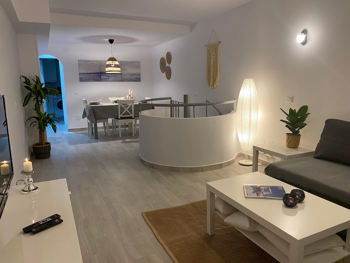 Ample and bright house by the sea. Enjoy the lengthy beach right at your front door! Great and chilling views. On the beach. Terrace facing the promenade by the sea, the perfect place to enjoy a good talk with friends or family ( 6 people Max.) The Duplex Romar apartment is ideal to enjoy with the family, well connected and surrounded by good restaurants, a supermarket, and a direct train stop from Malaga Airport.
