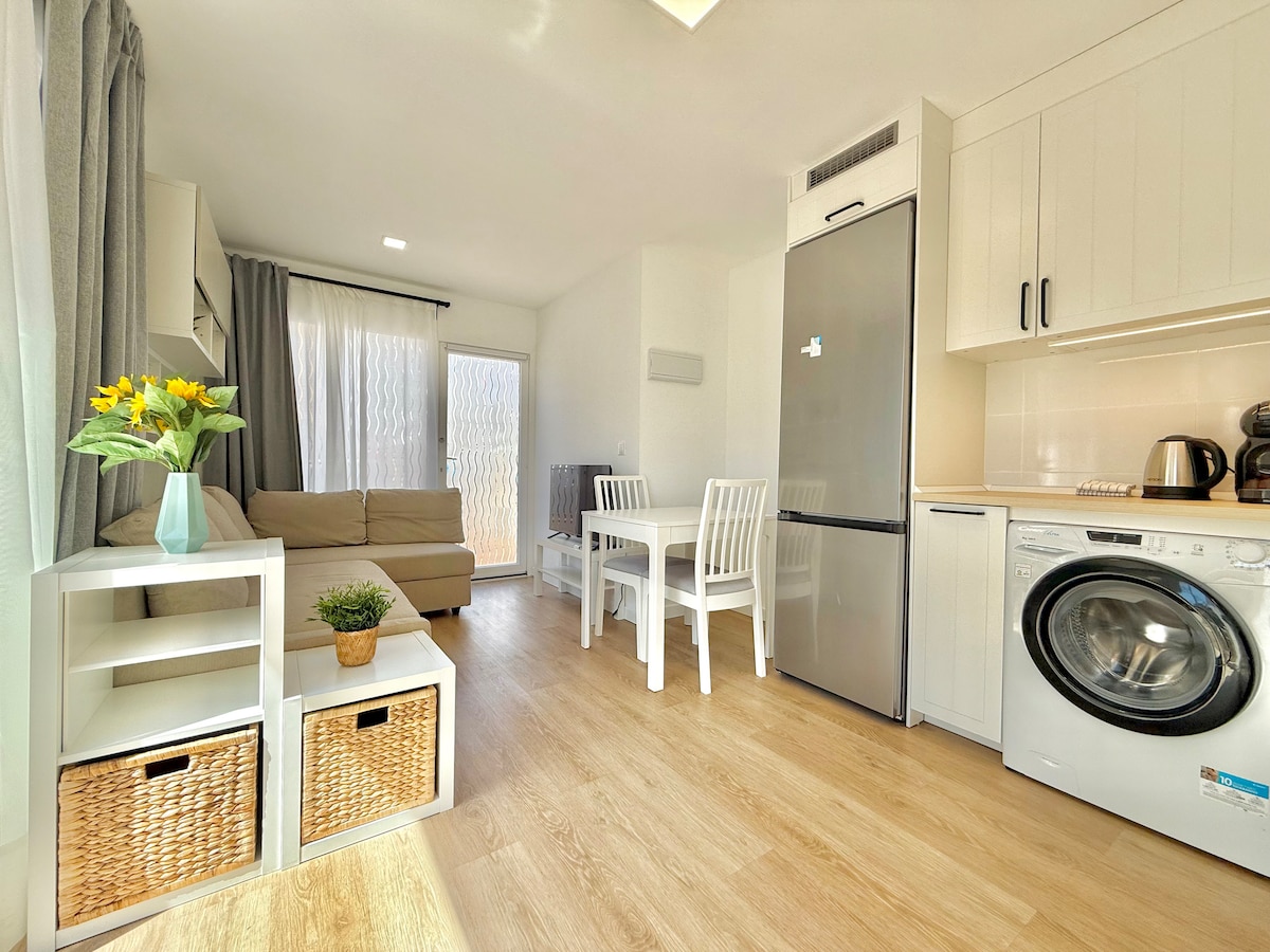 Welcome to this spectacular 1 bedroom apartment with 2 large terraces and a small inflatable Jacuzzi for the exclusive use of the apartment guests. The apartment has been completely renovated in June 2021. The apartment has AC, heating, and comes fully equipped so that the guest can have all the comforts (washing machine, dishwasher, home automation,...). The complex, on the beachfront, has 5 swimming pools and spectacular views of the sea and the mountains.