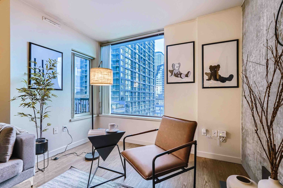 🔥🔥🔥LOCATION,LOCATION,LOCATION!!!This modern luxury building located conveniently in Heart of Downtown Seattle, just steps away from Pike Place Market, Post Alley, Waterfront Park, and notable attractions like the Seattle Art Museum. The unit is fully stocked & beautifully decorated with City & peek-a-poo Water views at the private patio! Apartments offers a downtown living experience like no other. Fine art galleries, restaurants, shopping, bars and nightlife are all at your doorstep!!