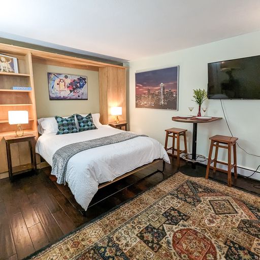 I love historical buildings with character. You can hang your hat here for a day or a month in comfort: a restful queen bed, a kitchen equipped for cooking, a desk to plan or work. It's steps from public transportation, top restaurants, Seattle U and Swedish Hospital, and a short pleasant walk to Capitol Hill's Pike/Pine district. Street parking is readily available. Downstairs, drop in at Peloton Cafe for quality food & beer. Ba Bar, everyone's favorite for Vietnamese, is always buzzing.