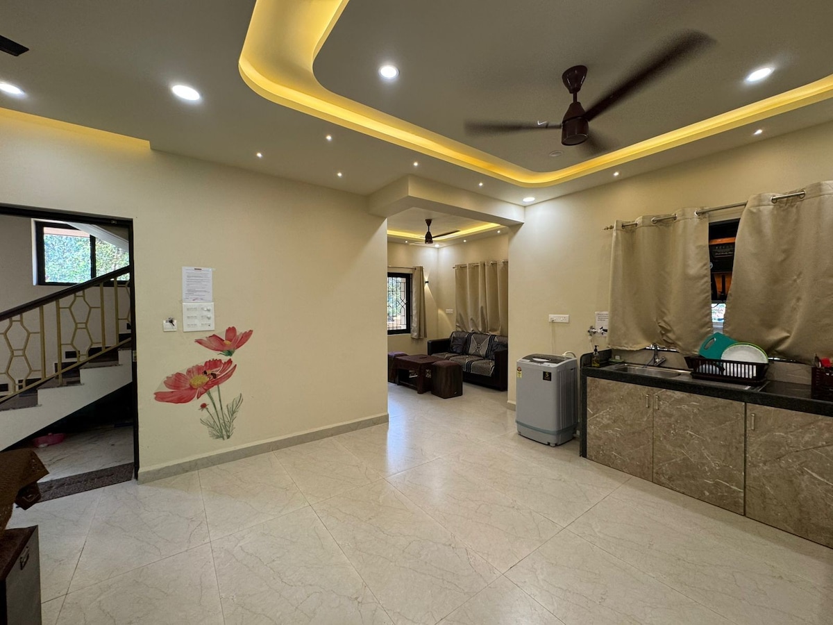 Fully furnished Tata Rio de Goa apartment near BITS Pilani Goa Campus. Flat has been furnished with 3 split ac, 2 geysers, 2 beds and 1 day bed (which can be converted into a queen size bed) Washing machine, inverter, Fridge, utensils,toaster, mixie, 2 hot induction plates, Microwave, water purifier, Dining table, iron with stand.Goa Tourism reg no HOTS001558. PLEASE NOTE All guests need to share identity proof ATLEAST 1 day before checkin Please rent self drive cars or bikes to best enjoy goa