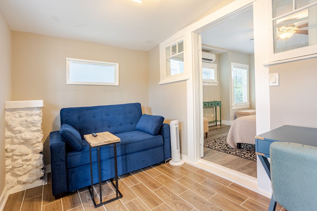 Cute & stylish studio apartment in downtown Tampa! Tucked away in a peaceful urban neighborhood just blocks from downtown Tampa, Armature Works, Amalie Arena (Benchmark International), Riverwalk & much more. Sleeps 4 with a king bed & high quality pull-out sofa. Enjoy a fully stocked kitchen with a coffee bar, plus a completely private courtyard - perfect for morning coffee or evening relaxation. There is another large courtyard in the back as well. The ideal mix of comfort, style & convenience!