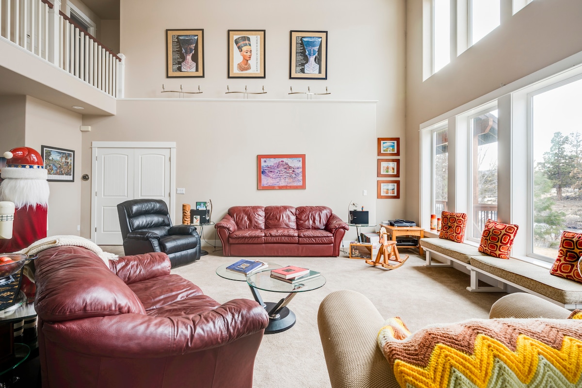 Welcome to the "Cascade Chalet", perfect for a family or friend's getaway. Relax in the tranquil backyard while the ponderosa pines whisper above. At night, enjoy the warm fire, while gazing at the constellations under a cozy blanket. You're 30 minutes from Mt. Bachelor, 8 minutes to Phil's Trailhead and walkable to downtown. The back door leads to a spacious yard with plenty of seating and a large outdoor green space, grill, gas fireplace and kids play area.
