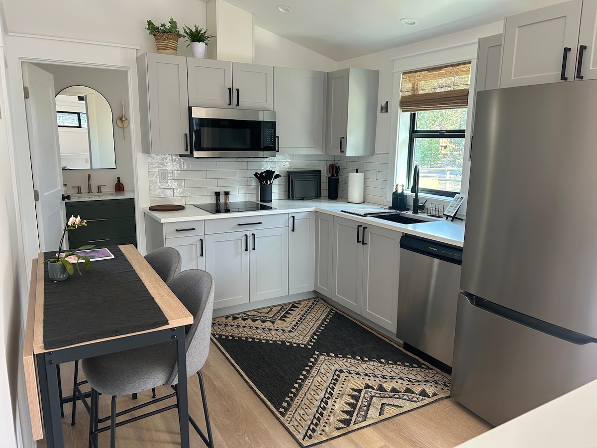We have a beautiful guest house with tons of natural light and all the amenities you'll need in the best location Bend has to offer. 1 Bedroom, 1 Bath, with a sunroom which can easily be used as a second bedroom whenever needed. The house has a full kitchen with stainless appliances. Best of all, you can't get any closer to Mt. Bachelor, the Deschutes, or Bend's trails. All while still being 8 minutes from downtown Bend.