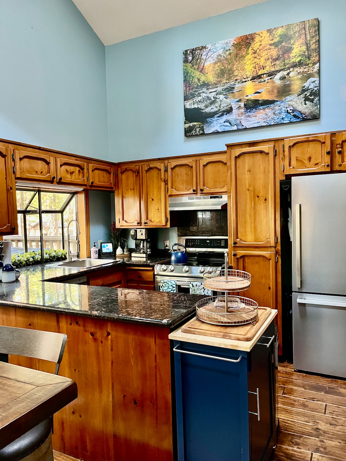 Peaceful, intimate bedroom (referred to as a “studio”) with a generously sized bathroom. Facing a large, sunny community space, enjoy amenities like a Keurig, heated bathroom floors, log bed, AC and PRIVACY. Experience a quaint, welcoming atmosphere, making it effortless for you to focus on what truly matters—creating cherished memories during your stay. This studio features WiFi, washer/dryer, kitchen essentials, TV with streaming, EV charger and self-check in. The studio is 300 square feet.