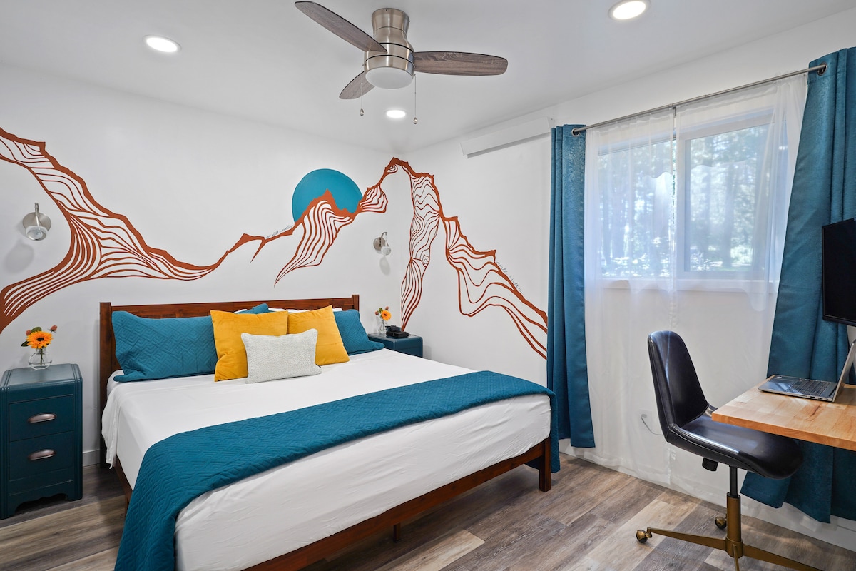 Enjoy our new custom-built ADU located a block away from the Deschutes River in a quiet residential neighborhood, just a 10-minute walk from downtown along the River Trail. In this modern, bright, and private space, you'll enjoy the luxuries of hardwood floors, waterfall countertops, a built-in workspace, heated tile bathroom floors, a 55" Smart TV, BBQ and fire pit, and endless hot water—plus off-street parking and EV charger. One king bed, one daybed with a trundle, and one queen sleeper sofa.