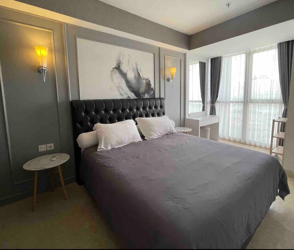 Enjoy a stylish experience at this centrally-located place. Green Sedayu Apartment is integrated with Green Sedayu Mall with lots of facilities inside. It is also quite near to the airport. Step into your cozy retreat and be greeted by a charming private balcony and a large window showcasing stunning city views. Relax and enjoy your stay! (Pool and gym are available for minimum 6 months rental 🙏)