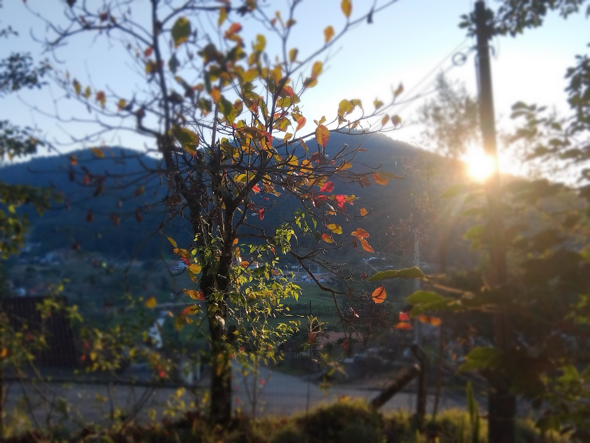 Relaxe neste lugar único no alto da montanha, com uma vista incrível e panorâmica da cidade. Uma cabana completa para sua hospedagem. Conta com cozinha completa e todos utensílios. Canais de streaming disponíveis: Netflix, Disney+, HBO Max. TV a cabo