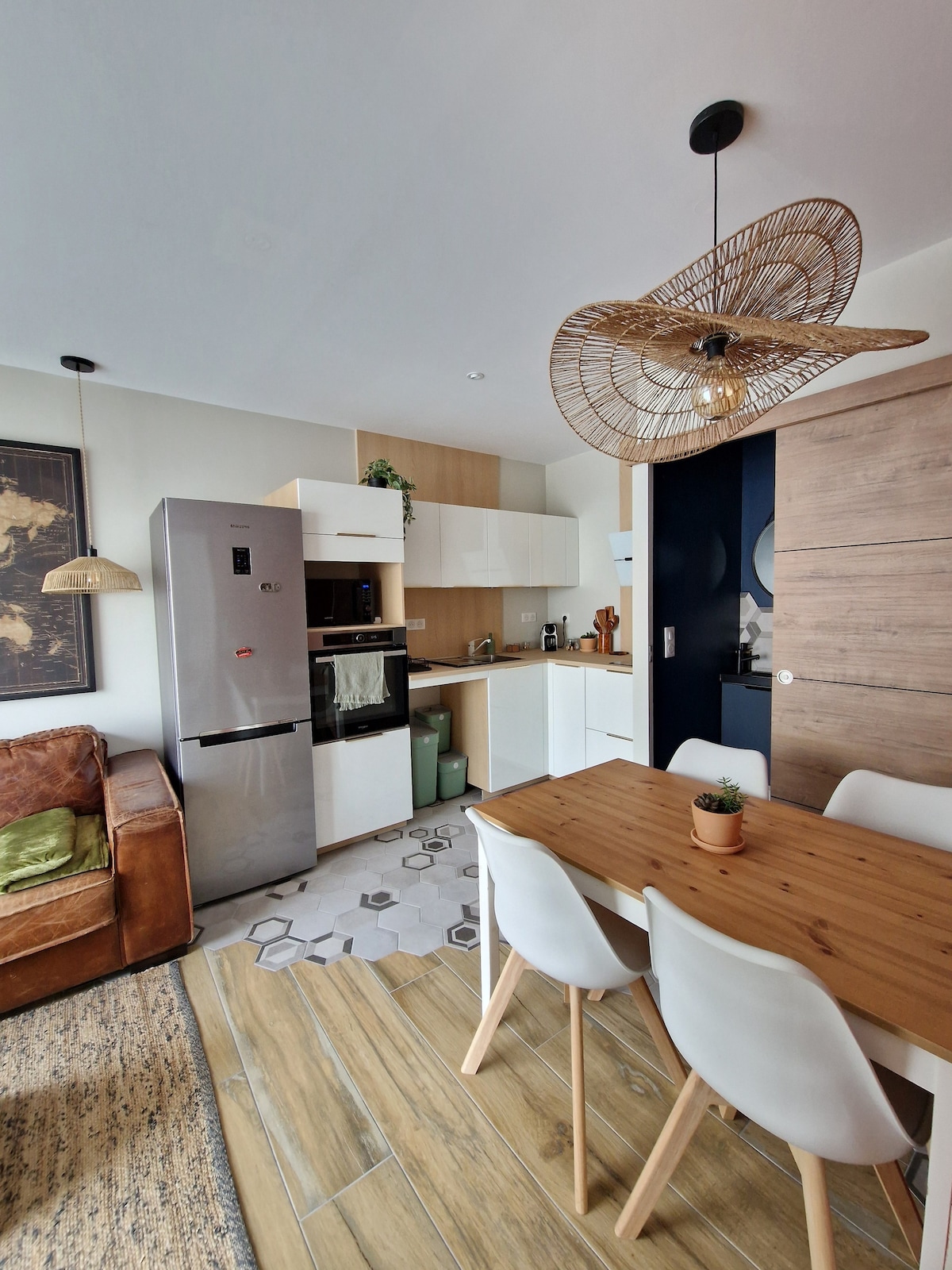 Appartement cosy rénové accolé à la maison, avec un petit extérieur ! Proche de toutes commodités : pharmacie, boulangerie, bureau de poste, tabac presse et à 5 min en voiture du LIDL. Transports: arret de bus accessible à pied, et proche de l'autoroute 5min en voiture Situé à 10km des plages de Capbreton et Hossegor et 20 km de Bayonne. Ce logement est lumineux et pratique avec son petit jardin, il dispose d’une chambre avec lit double, salle d’eau et salon avec cuisine. N°400360000161B