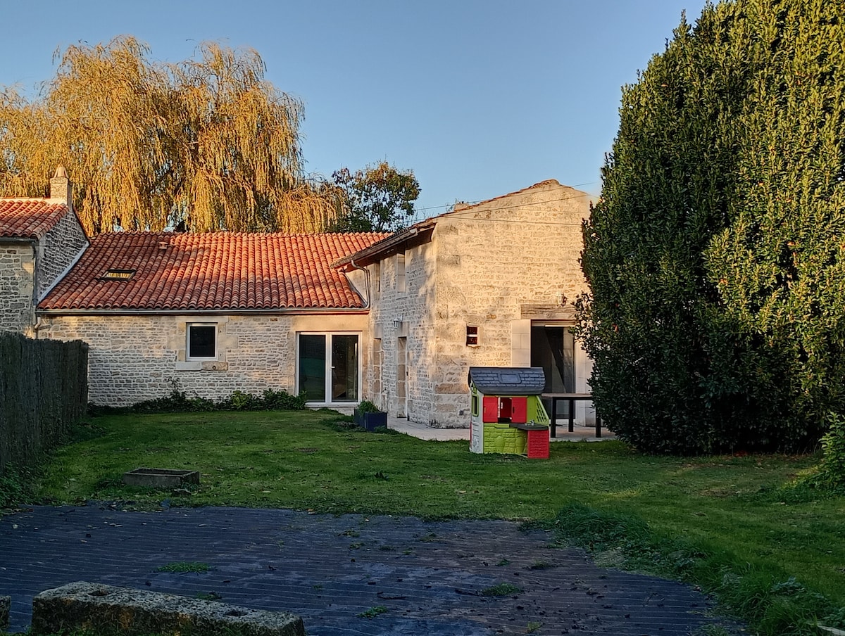 Maison située à 500m du centre bourg de Coulon. Sa situation privilégiée tout près des commerces, marchés, restaurants et balade en barque dans le Marais Poitevin vous permettra de vous déplacer uniquement à pied. Vous pourrez également partir de la maison en vélo pour arpenter les 850km de pistes cyclables de la Venise Verte. Vous serez à 3/4 d'heure de La Rochelle, 1h du Futuroscope et 1h15 du Puy du Fou en voiture. Le logement est équipé de la Wifi.