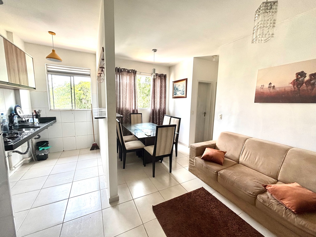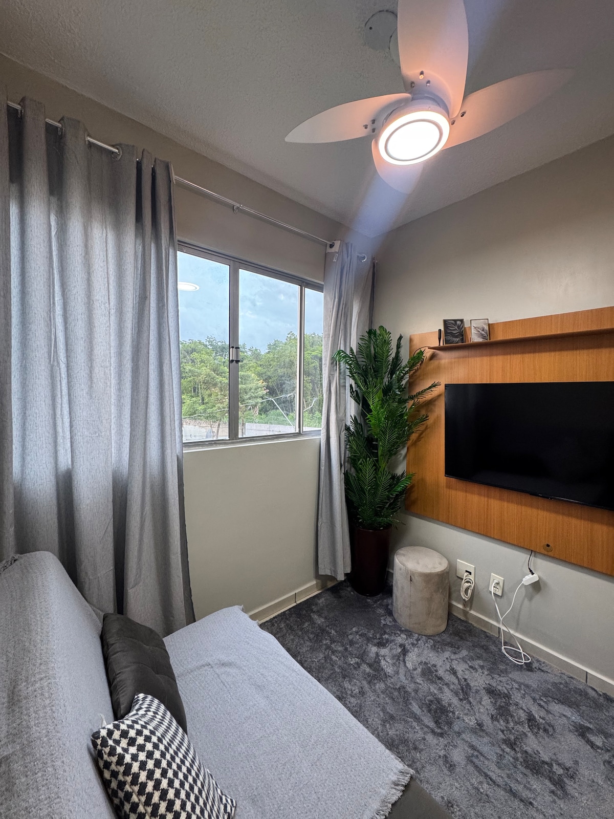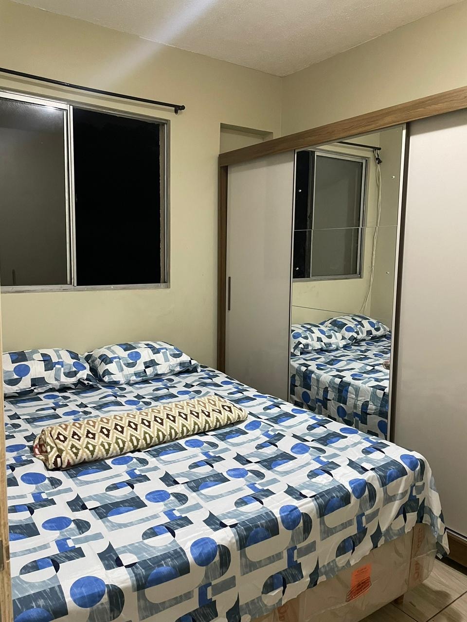 Lindo apartamento em condomínio fechado Com piscina, churrasqueira e areas de lazer. Também possui um mini mercado dentro, e muitas opções de alimentação nas áreas próximas. Acomodação possui 2 quartos (1 quarto com cama de casal e guarda roupa 1 Sala com mini bar e Tv. 1 Banheiro 1 Cozinha com Utensílios e Air fryer 1 Área de Serviço
