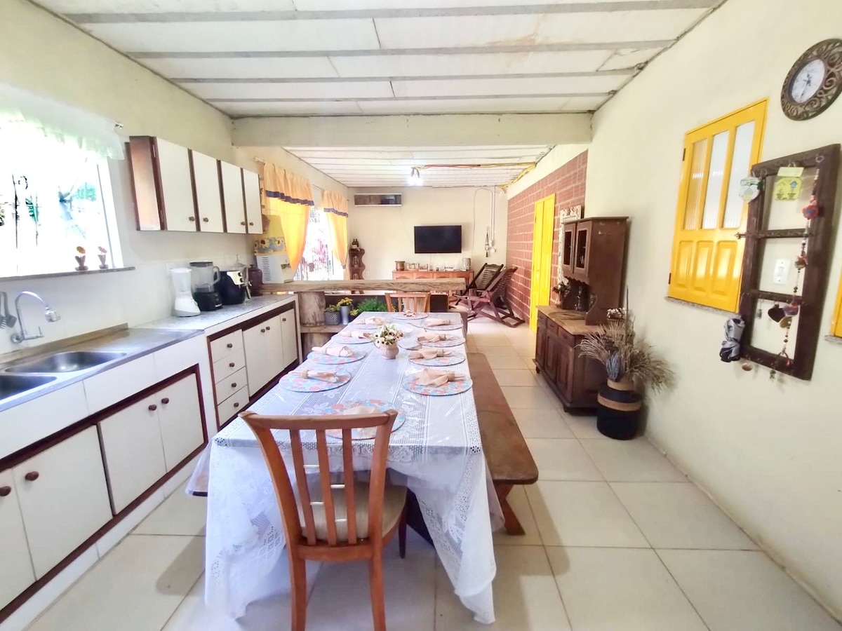 Descubra uma casa de campo encantadora na charmosa região de Murinin, em Benevides, a apenas 40 km de Belém, Pará! Nosso espaço oferece um ambiente tranquilo, cercado por natureza, perfeito para quem busca descanso, conexão com o verde e um ritmo mais calmo. O imóvel recebe você com 3 quartos e 4 banheiros para acomodar seus hóspedes. Para sua diversão há cadeira de praia, espreguiçadeiras, guarda-sol, piscina, terraço coberto com churrasqueira, campo de futebol, redário e cabana coberta.