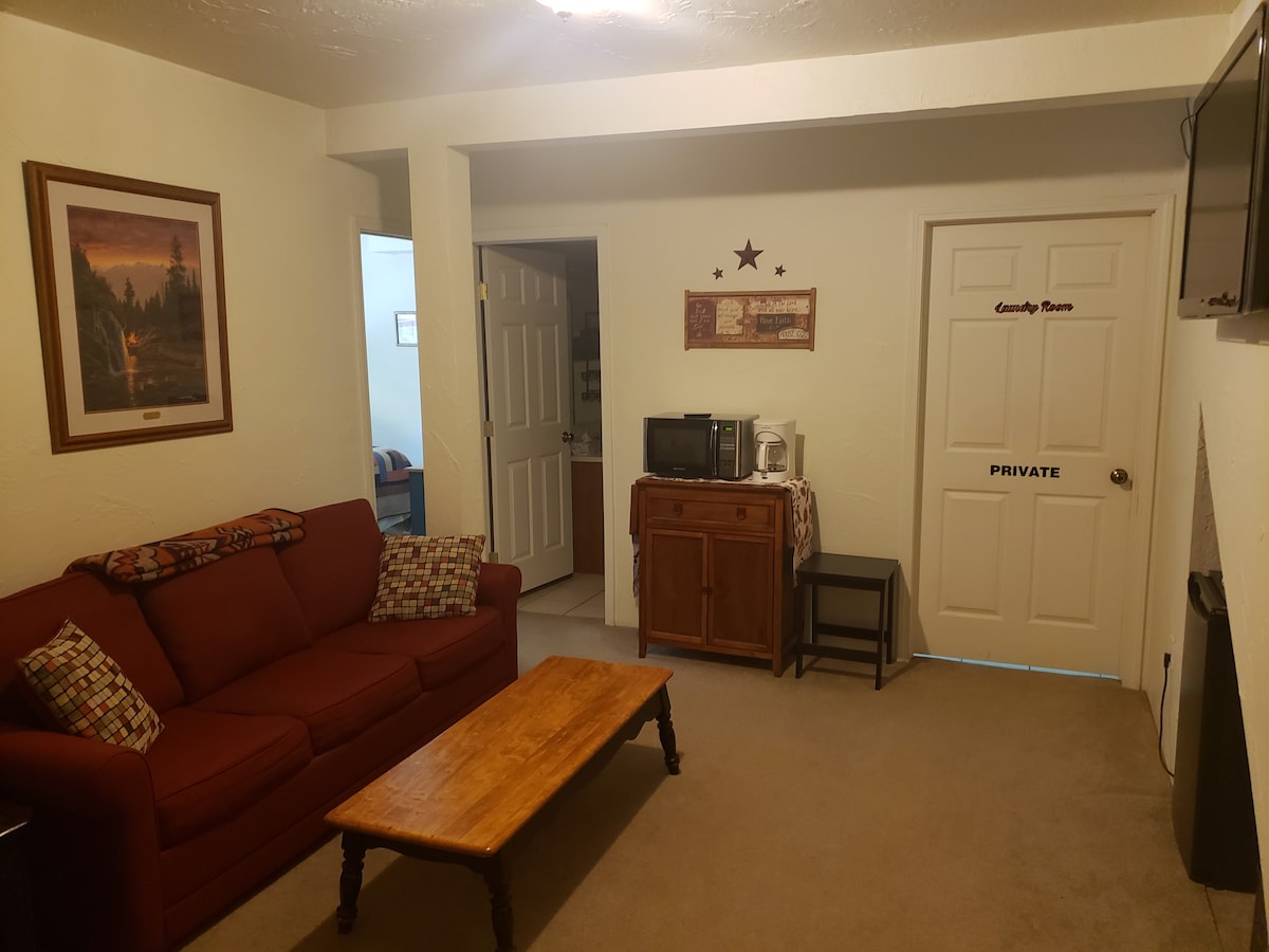 This quiet couple’s getaway is located just steps away from the St. Joe River. The waterfront one bedroom suite is fully furnished, has covered deck, landscaped property with dock. Located 1.5 miles outside St. Maries. Explore the river by kayak, take a swim, or relax on the deck enjoying this little slice of heaven. Whatever the season, this is the perfect place for one or two adults to relax on the beautiful St. Joe River. We are exempt from hosting service or emotional support animals.