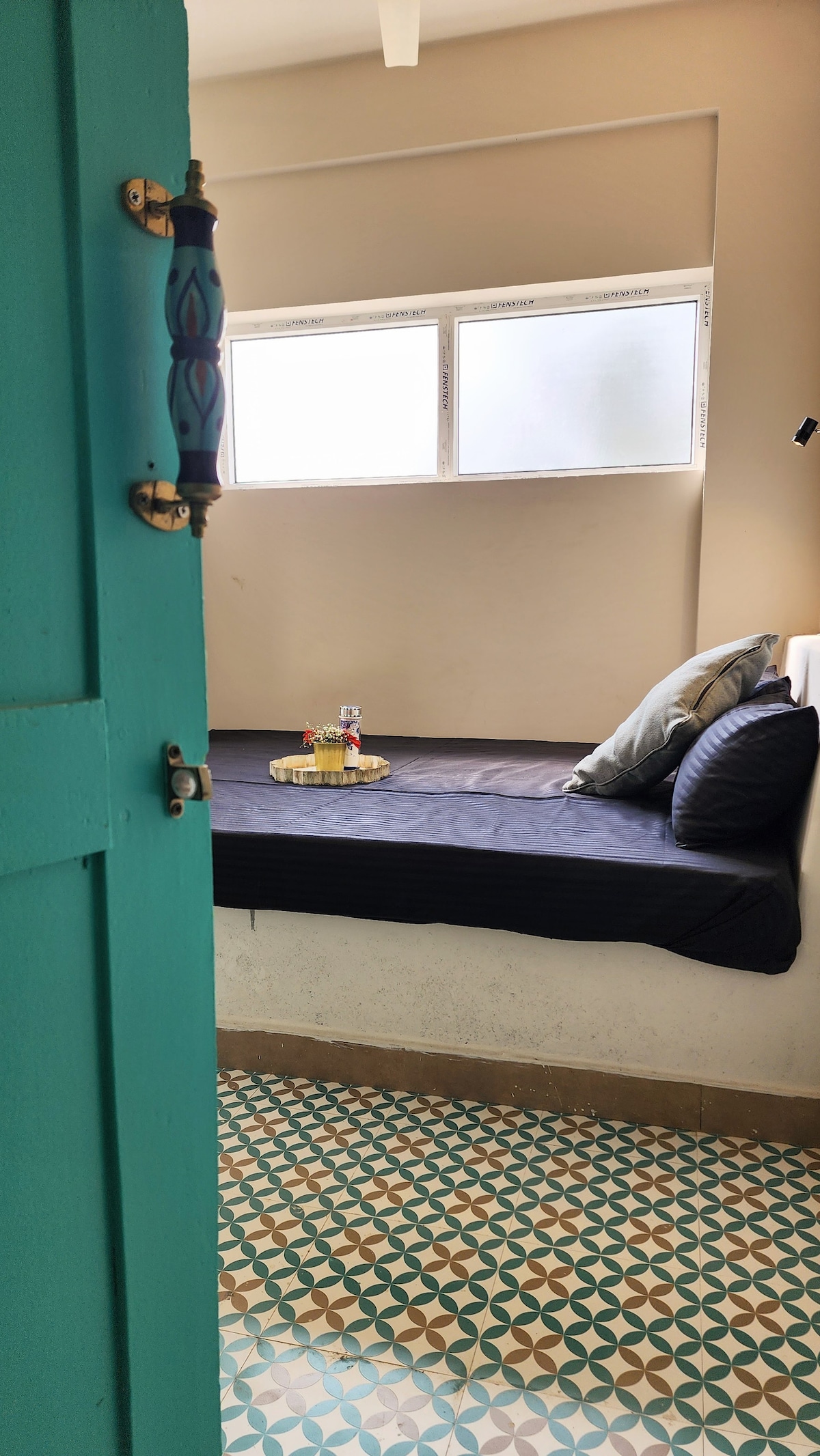 Experience our brand new, premium Studio Room, ideal for couples and travellers seeking comfort and privacy in a convenient location. The bedroom has a king bed with soft orthopedic mattress for a restful night's sleep. Features an Air Conditioner, 43-inch Smart TV, lightning-fast WiFi, and a dedicated work desk. Comes attached with a super clean bathroom that’s stocked with bath essentials. The building is equipped with a lift, security guard, 24-hour power backup and CCTV surveillance.