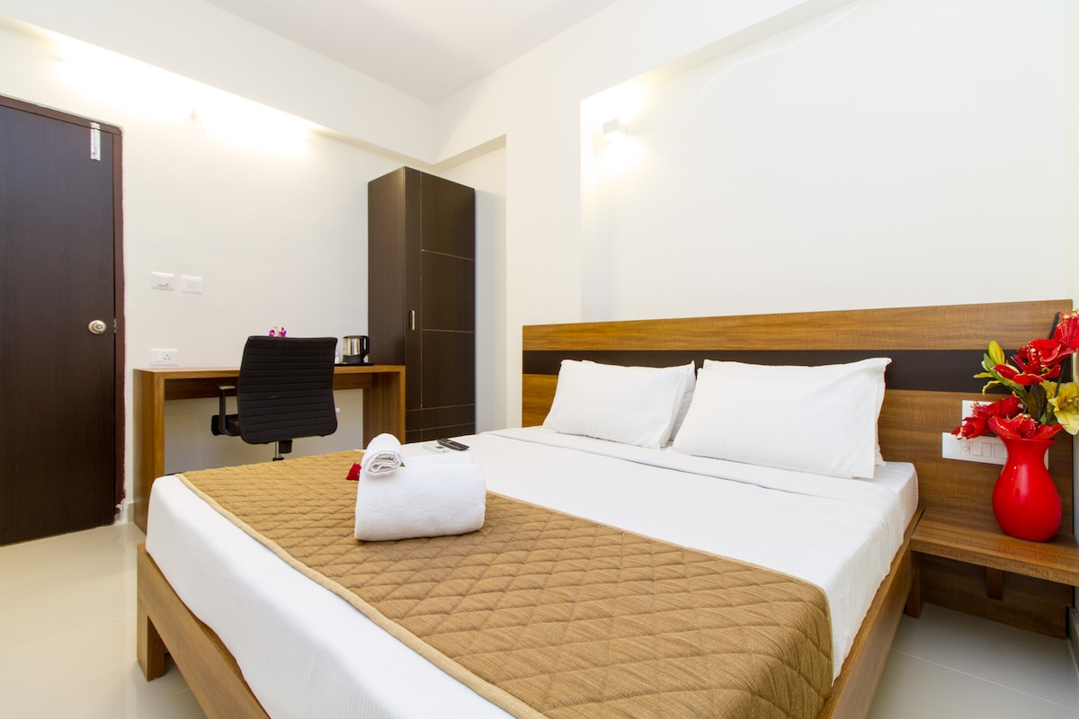 Koramangala Seasons Suites, with over 400 five-star Airbnb reviews, offers Luxury Serviced Apartment located at 60ft Road off Koramangala 6th Block near Bangalore’s most desired hangouts. All our Suites are air-conditioned, spacious, and beautifully decorated. Suitable for up to 4 adults and 2 child with a host of amenities and facilities. Ideal for hassle-free extended stays. We look forward to having you as our guest and making your stay comfortable and memorable