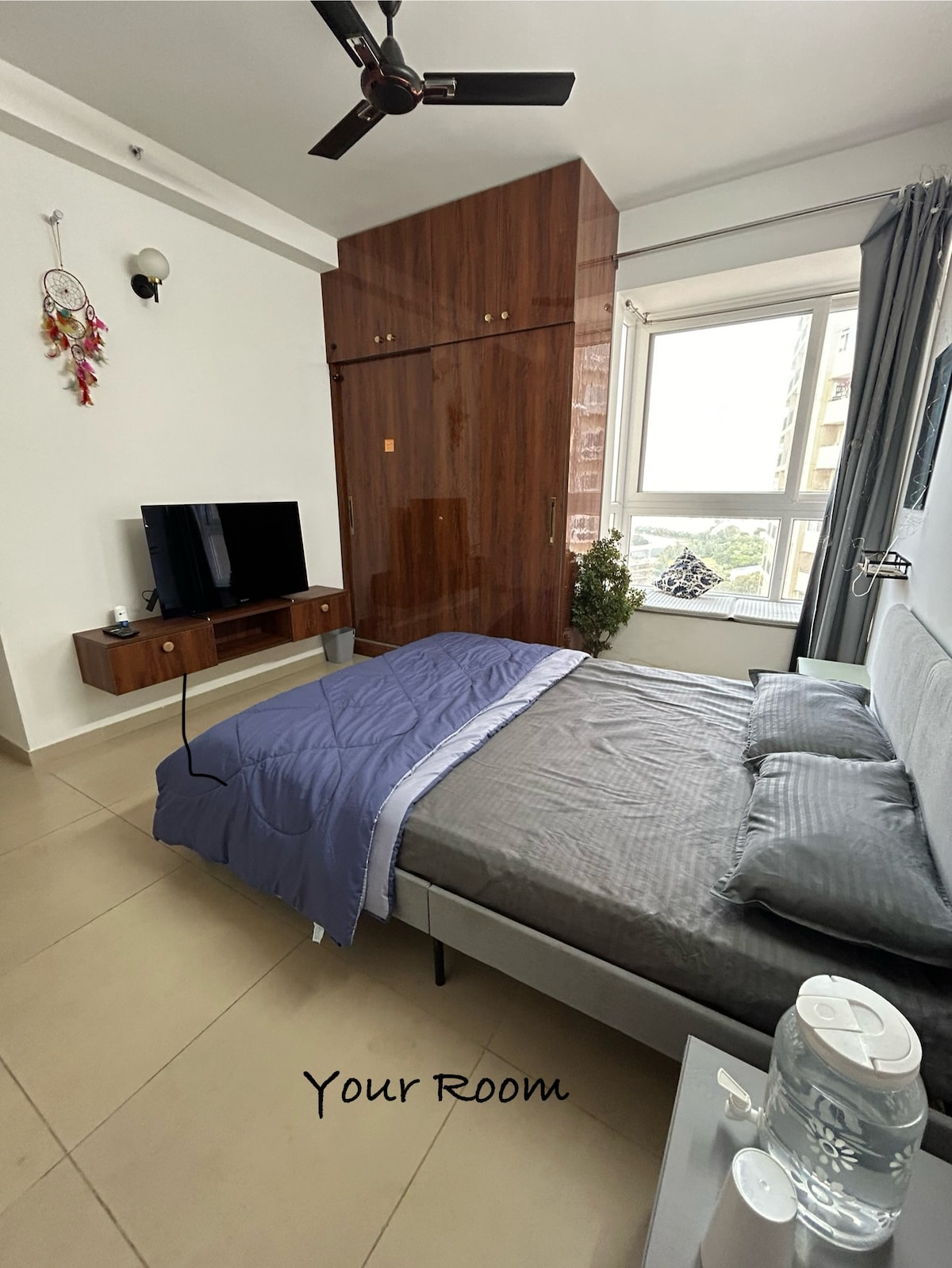 Indulge in relaxation at this super private penthouse featuring a huge covered balcony spanning 11 by 18 feet, complete with a cozy hammock and stunning views. The balcony can easily convert into a closed space for added privacy, creating the perfect atmosphere to unwind. If you're fortunate, you may even catch a glimpse of the full moon while enjoying your favorite movie with a glass of wine Nestled in tranquil surroundings away from main road traffic its just 1.4 km from Bagmane Busines Park